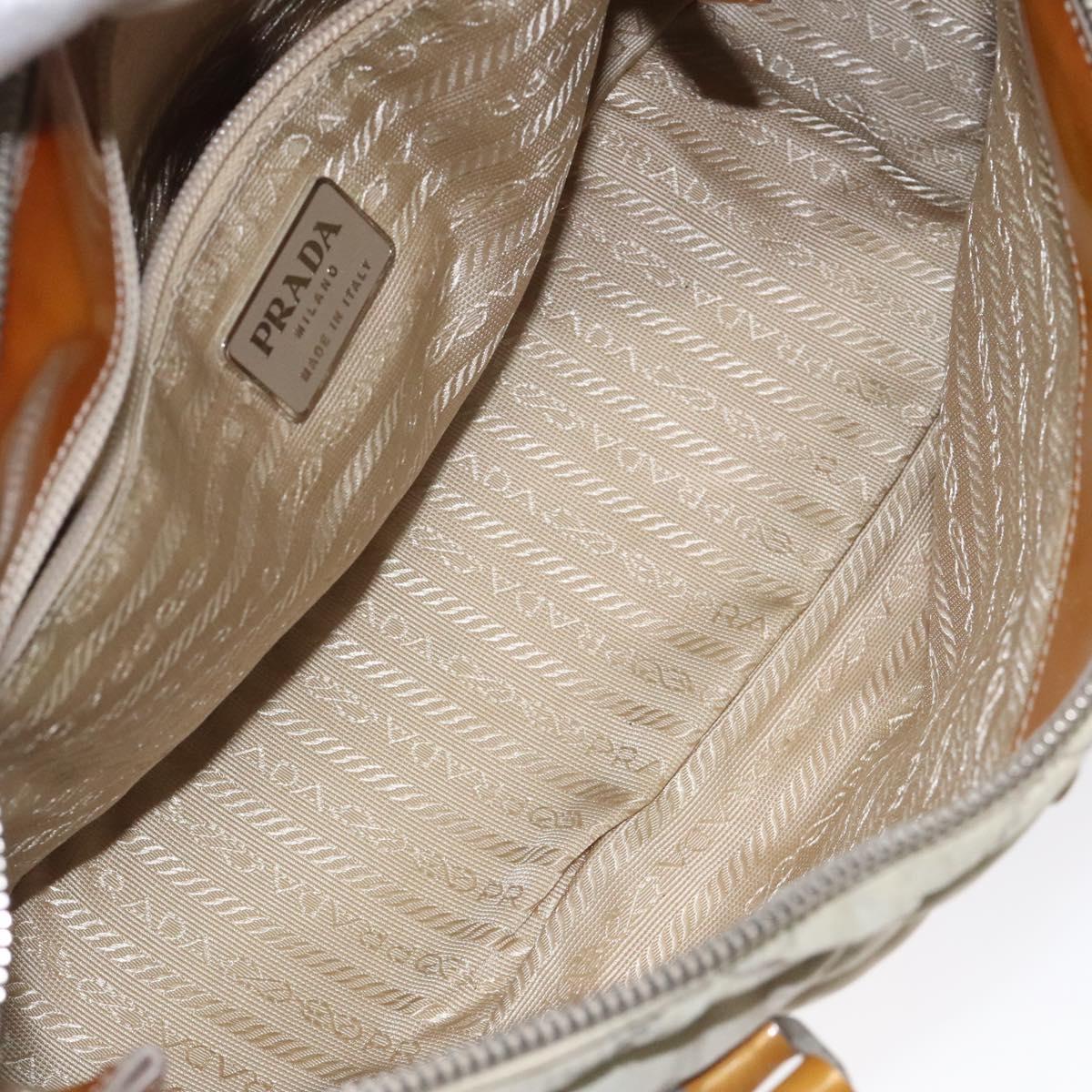 PRADA Quilted Hand Bag Nylon Beige Silver Auth ki5791
