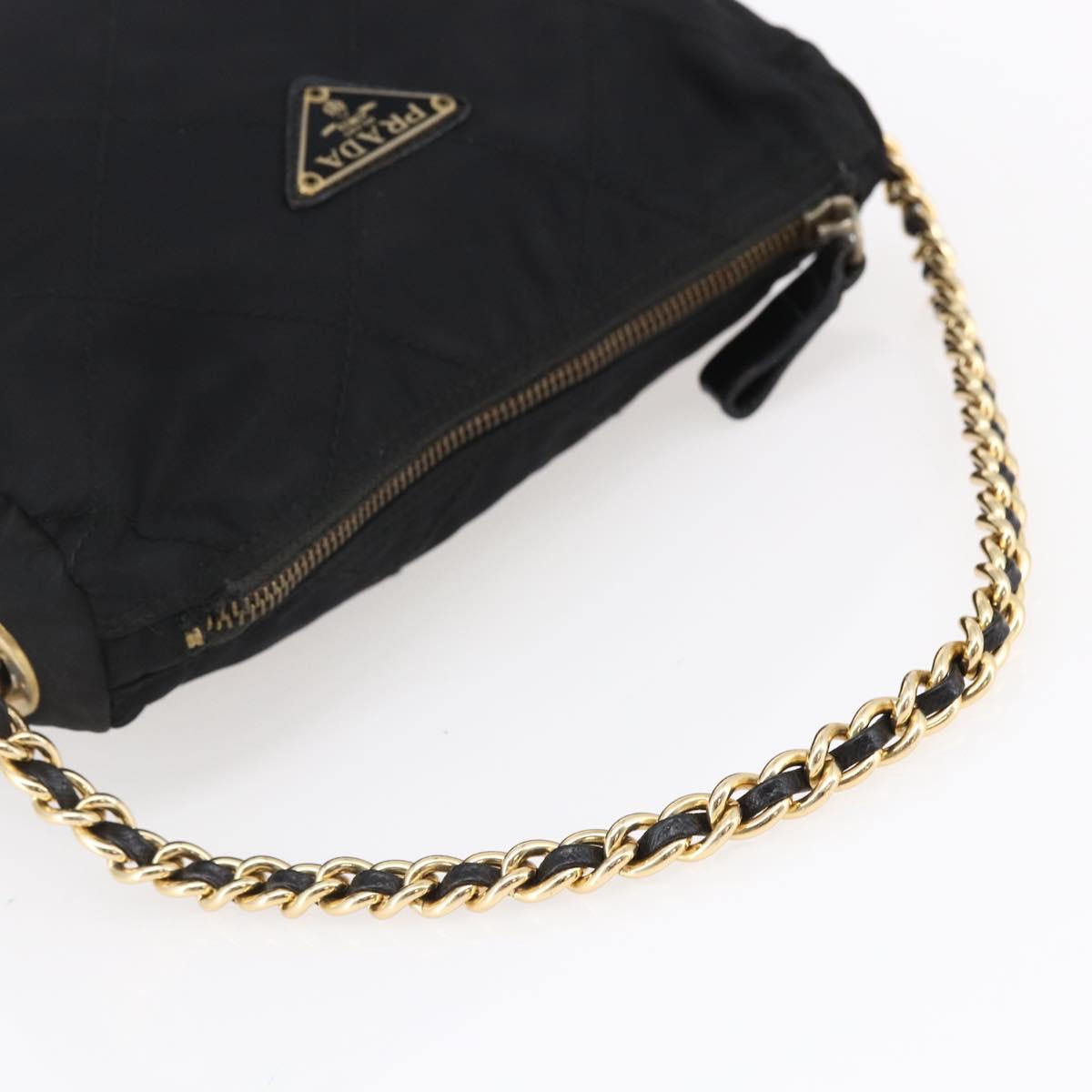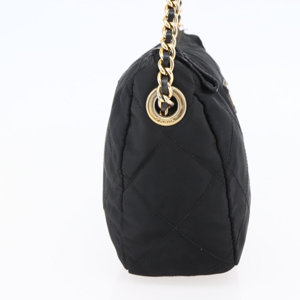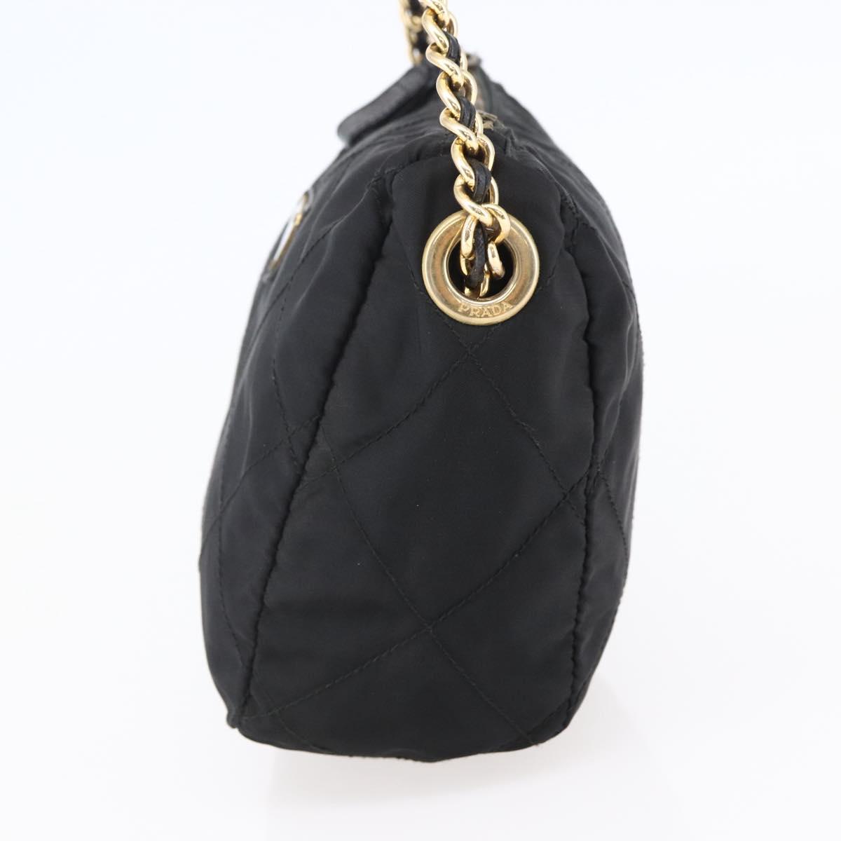 PRADA Quilted Shoulder Bag Nylon Black Gold Auth bs29912