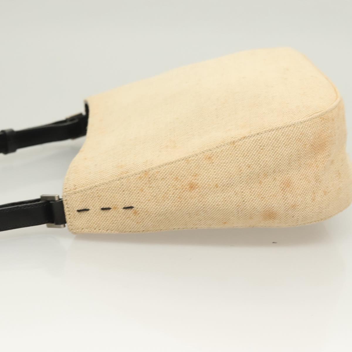 PRADA Shoulder Bag Canvas Beige Silver Auth bs27070