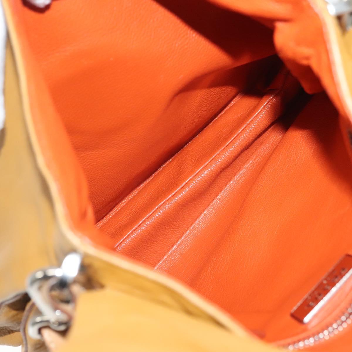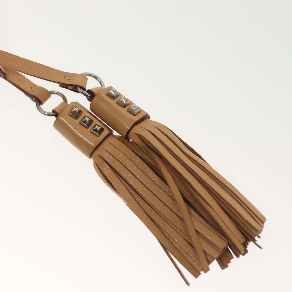 PRADA Shoulder Bag Leather Beige Silver Auth 140921