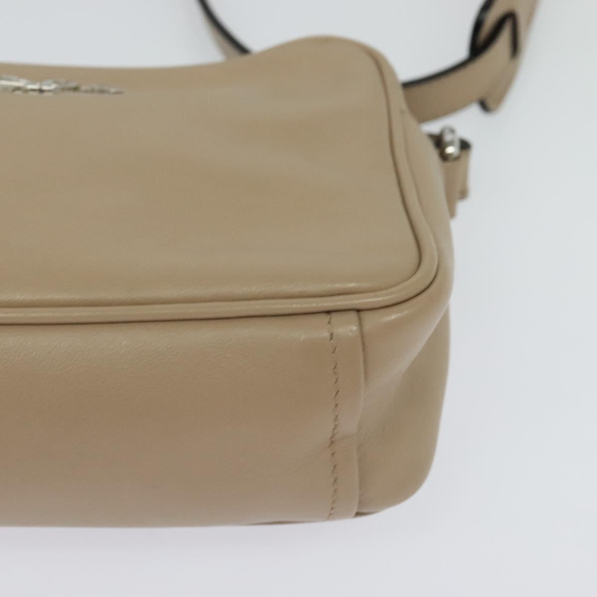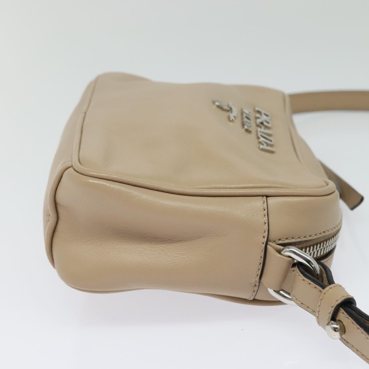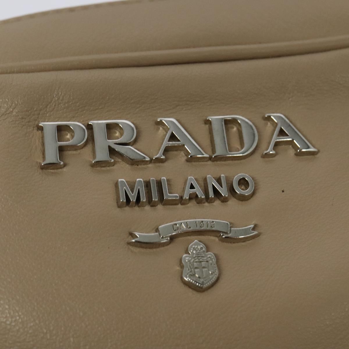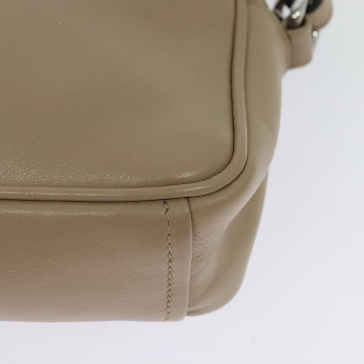 PRADA Shoulder Bag Leather Beige Silver Auth PP691
