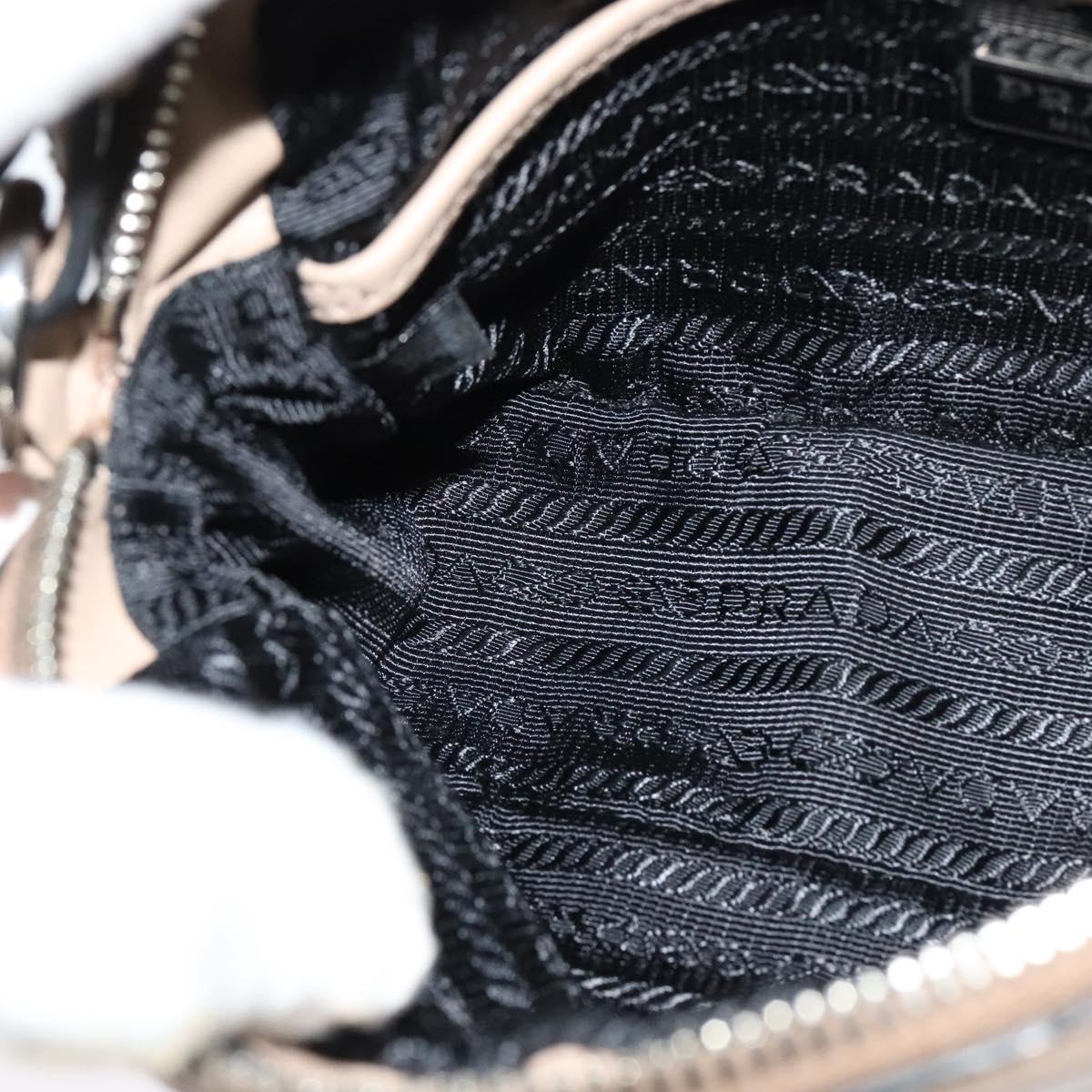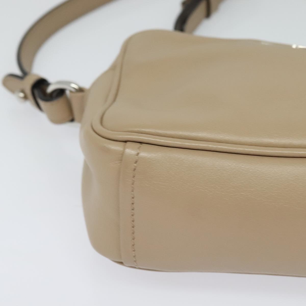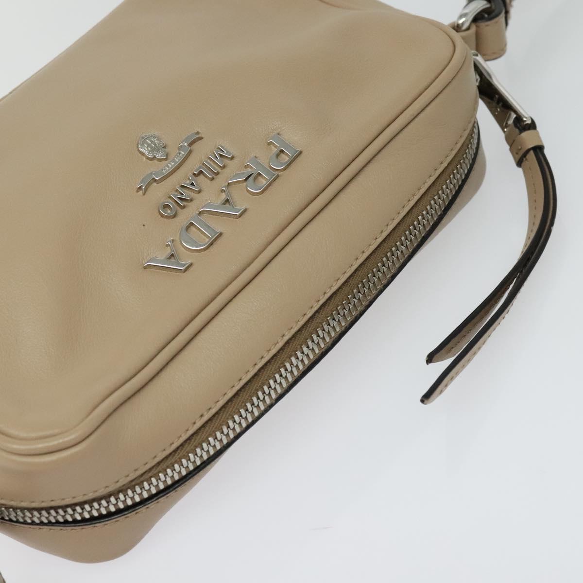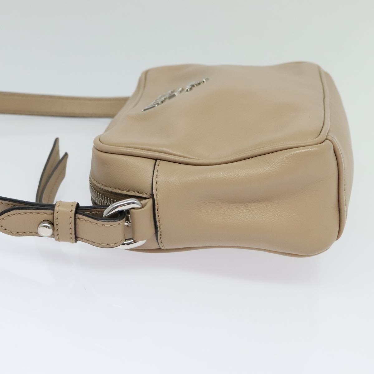 PRADA Shoulder Bag Leather Beige Silver Auth PP691