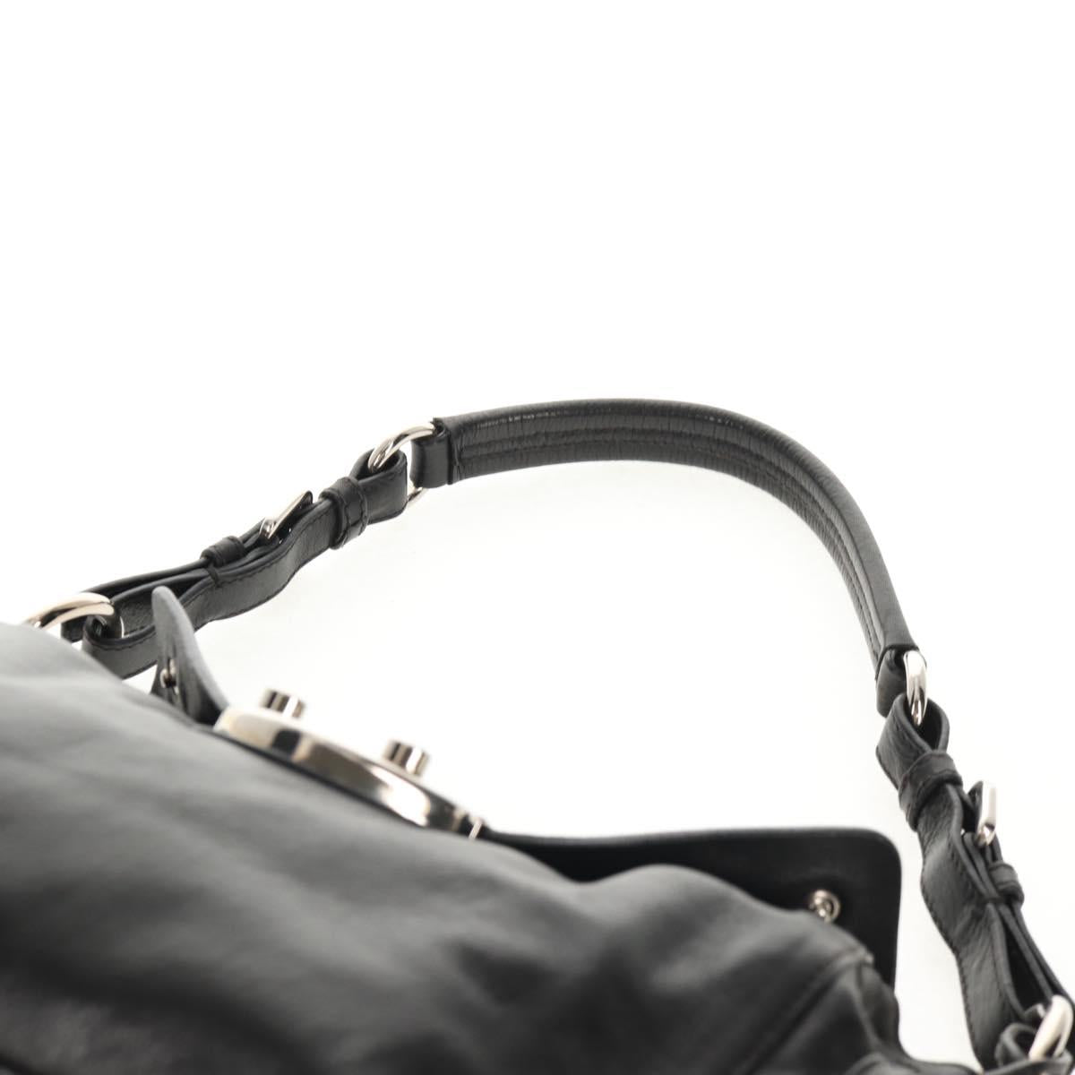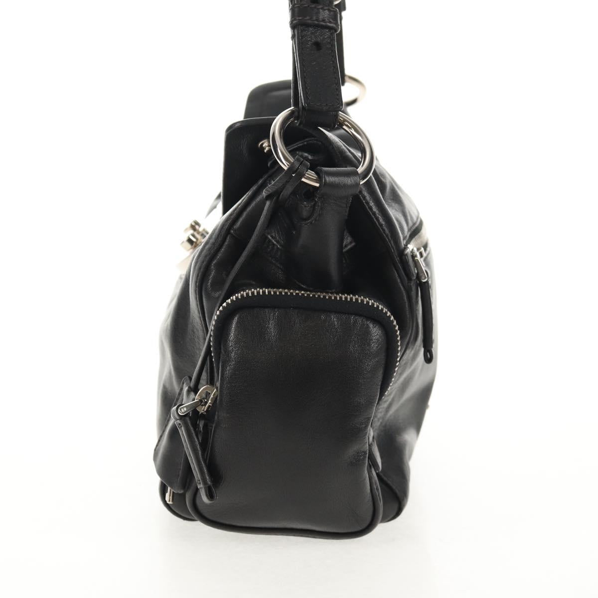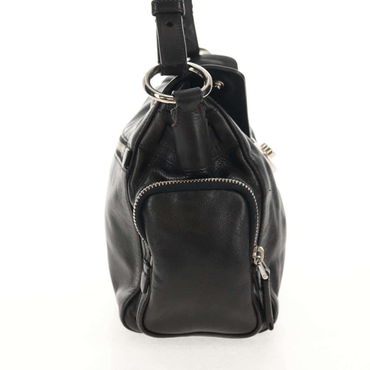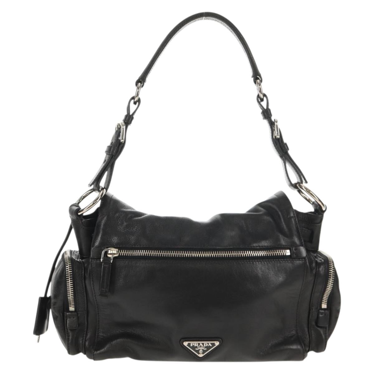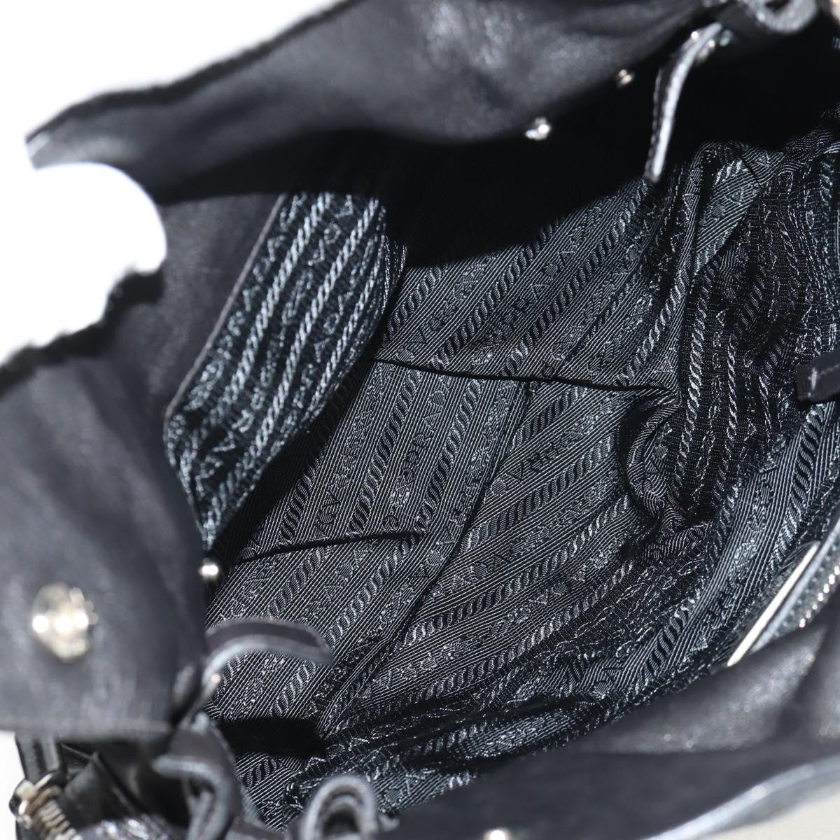 PRADA Shoulder Bag Leather Black Silver Auth am9339V