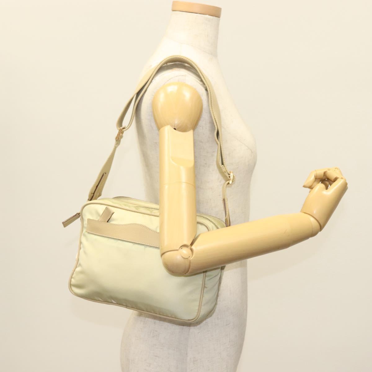 PRADA Shoulder Bag Nylon Beige Gold Auth hk2901