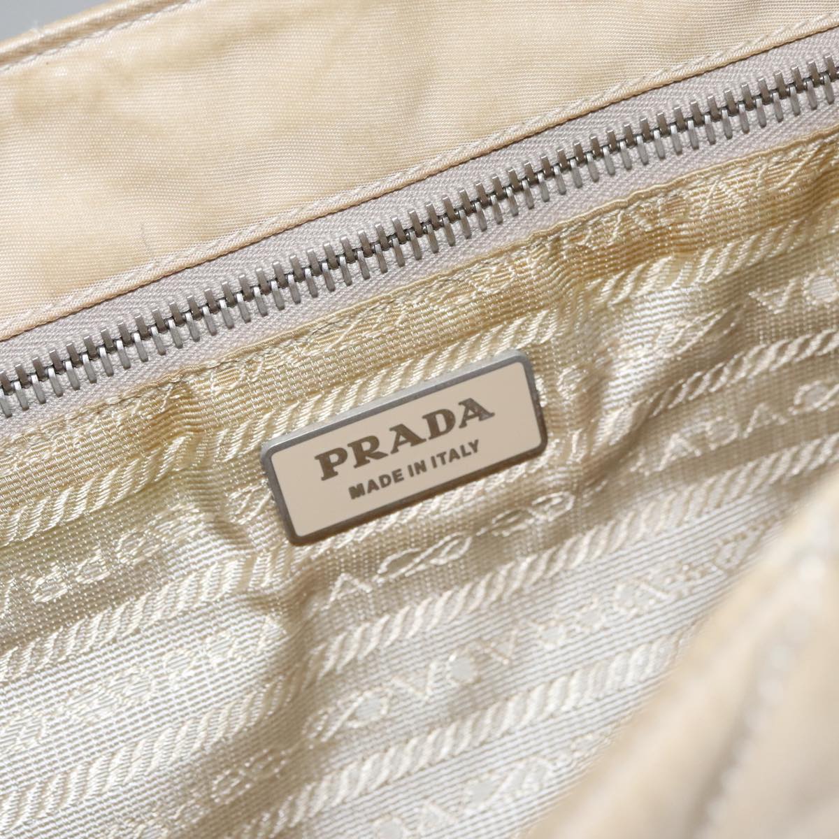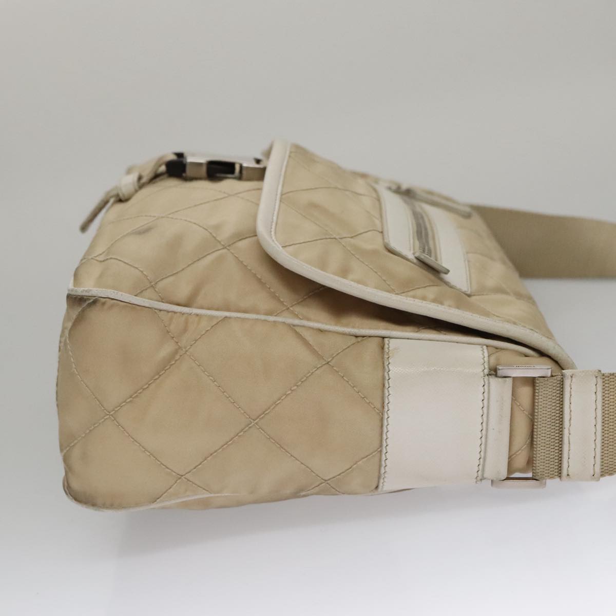 PRADA Shoulder Bag Nylon Beige Silver Auth 103773