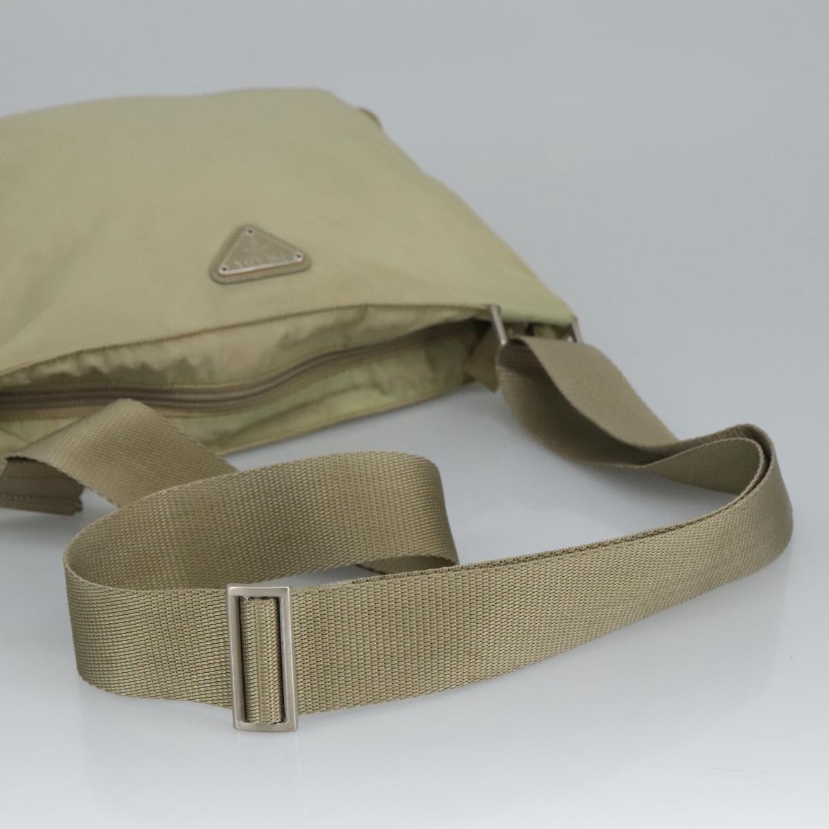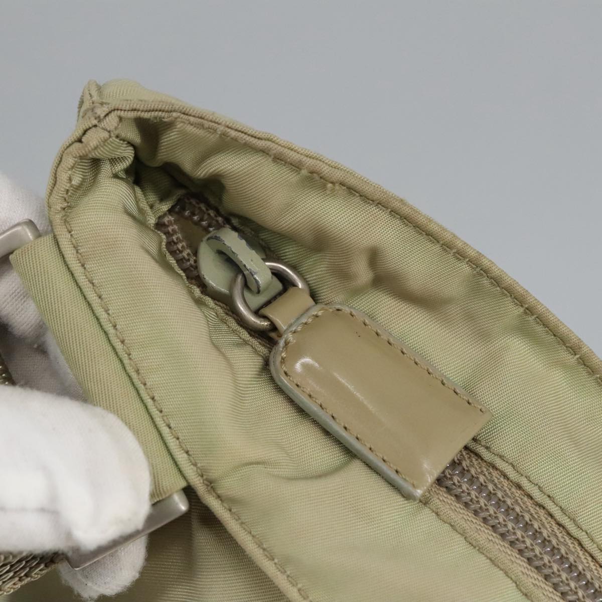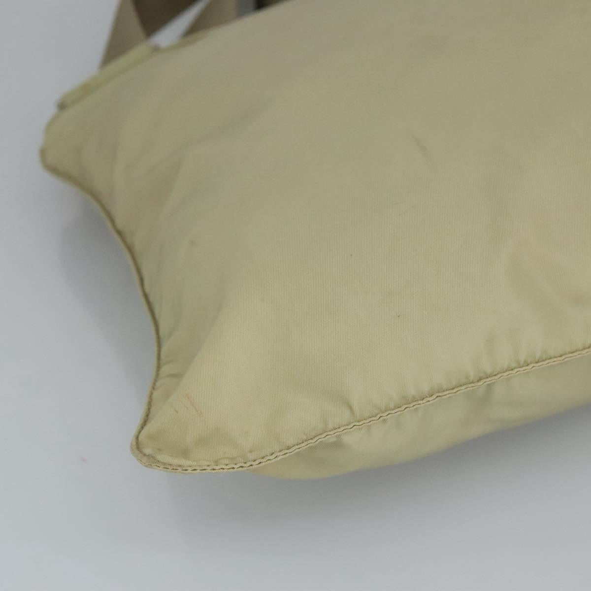 PRADA Shoulder Bag Nylon Beige Silver Auth ki5041