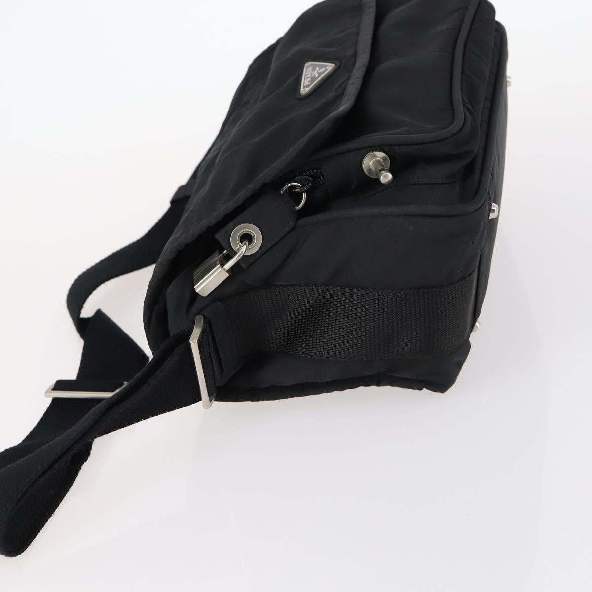 PRADA Shoulder Bag Nylon Black Silver Auth 144613