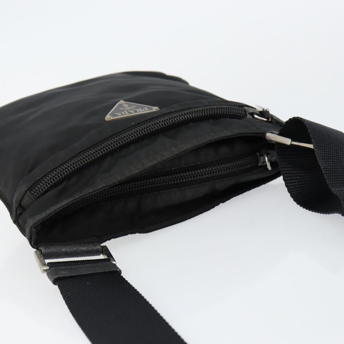 PRADA Shoulder Bag Nylon Black Silver Auth 145272