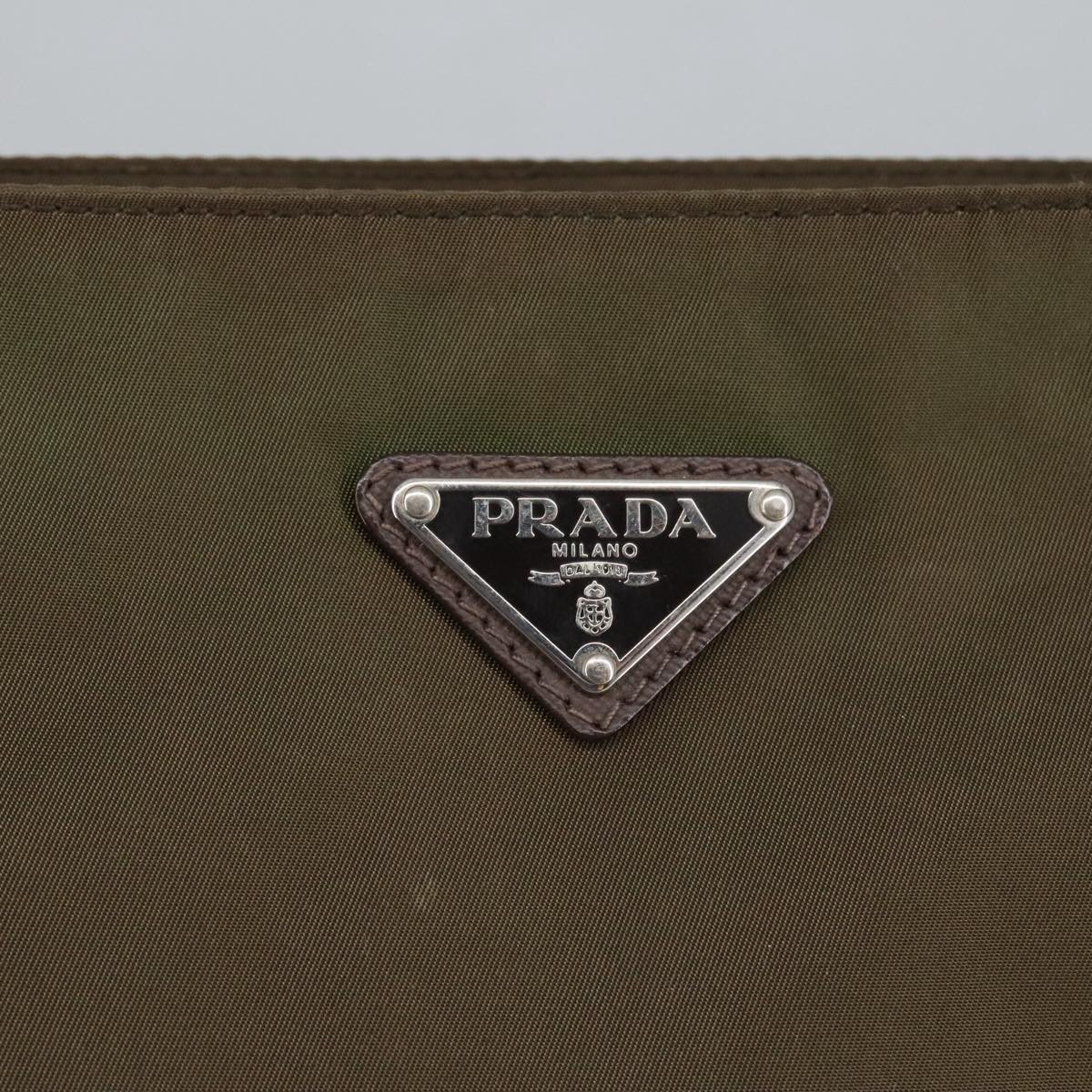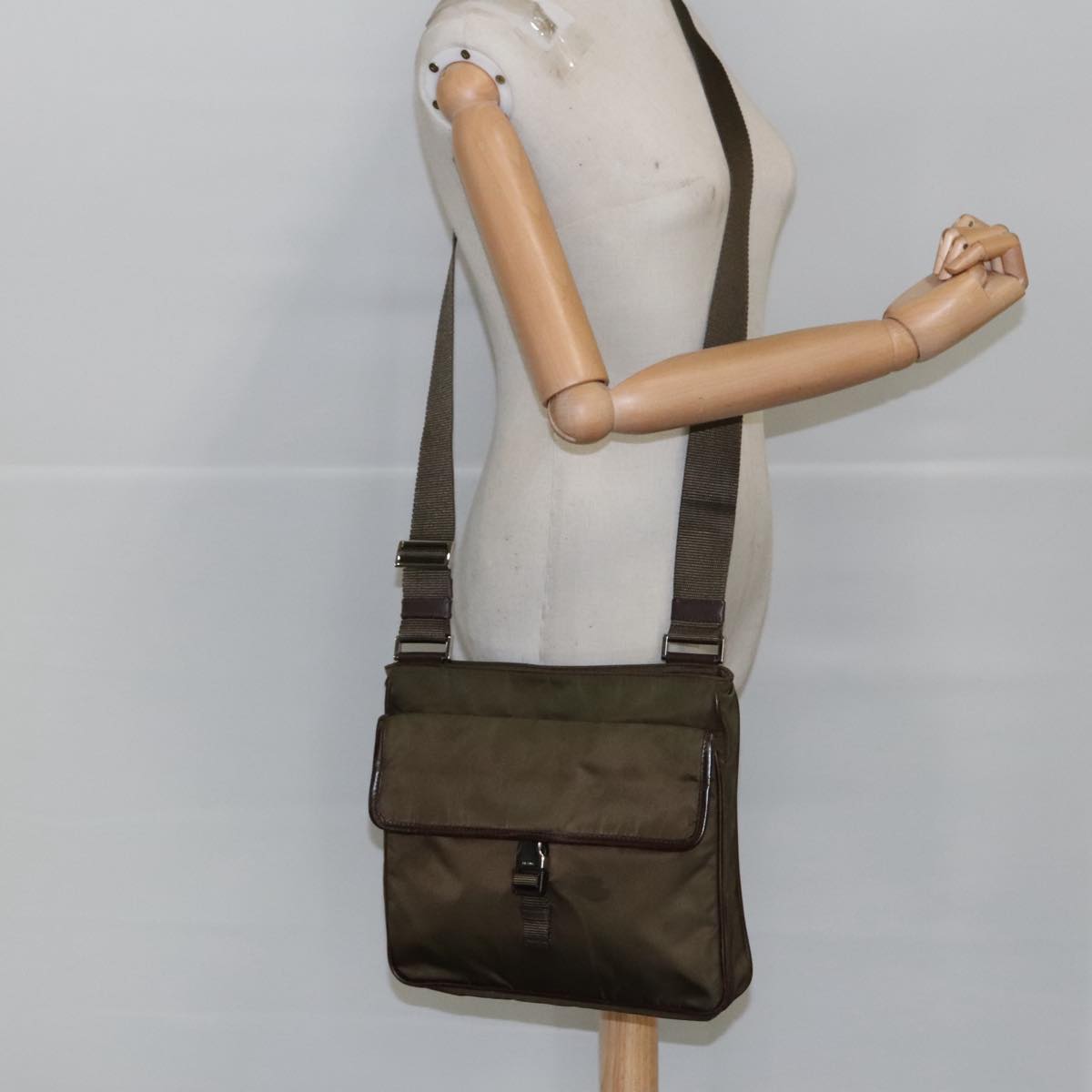 PRADA Shoulder Bag Nylon Khaki Brown Silver Auth bs19573