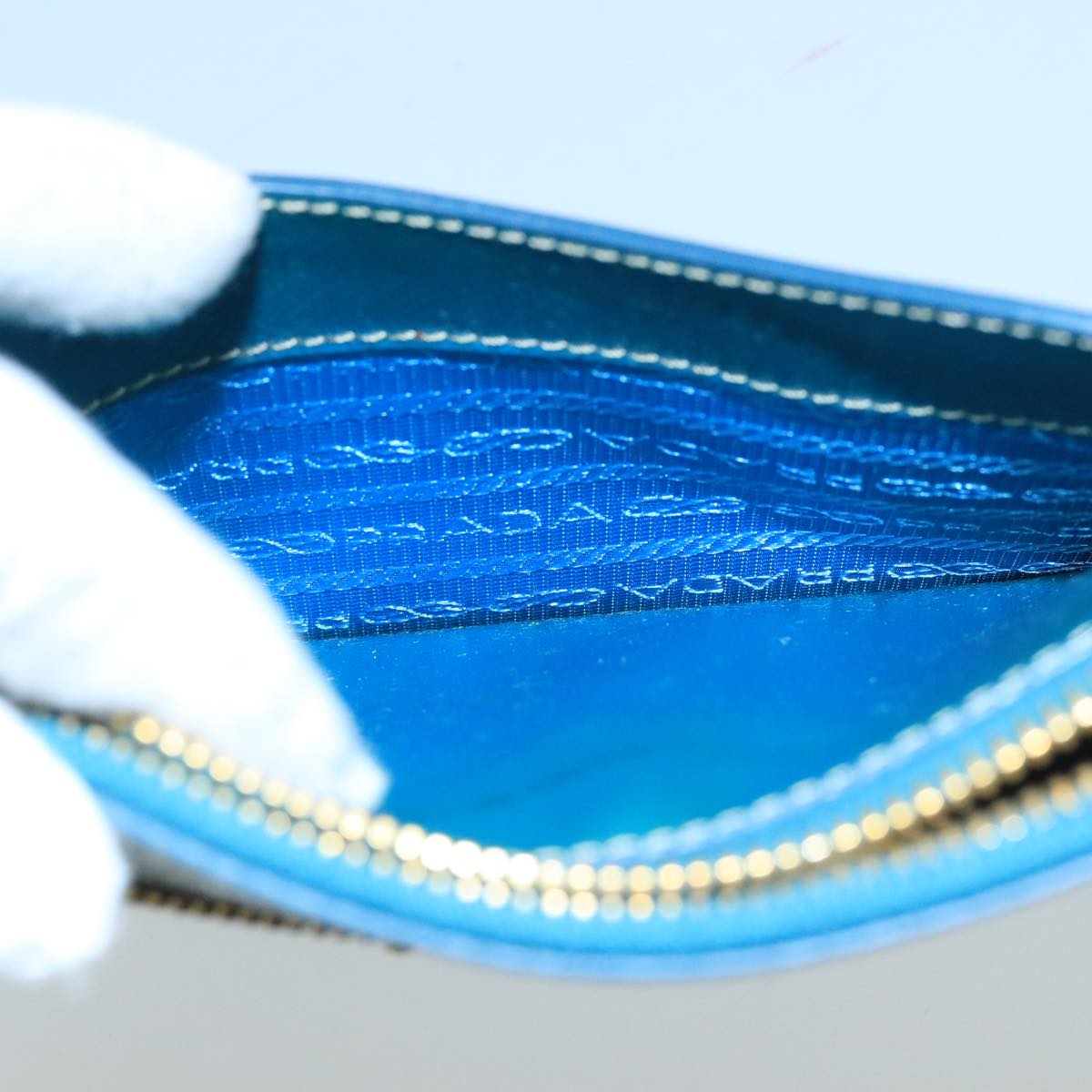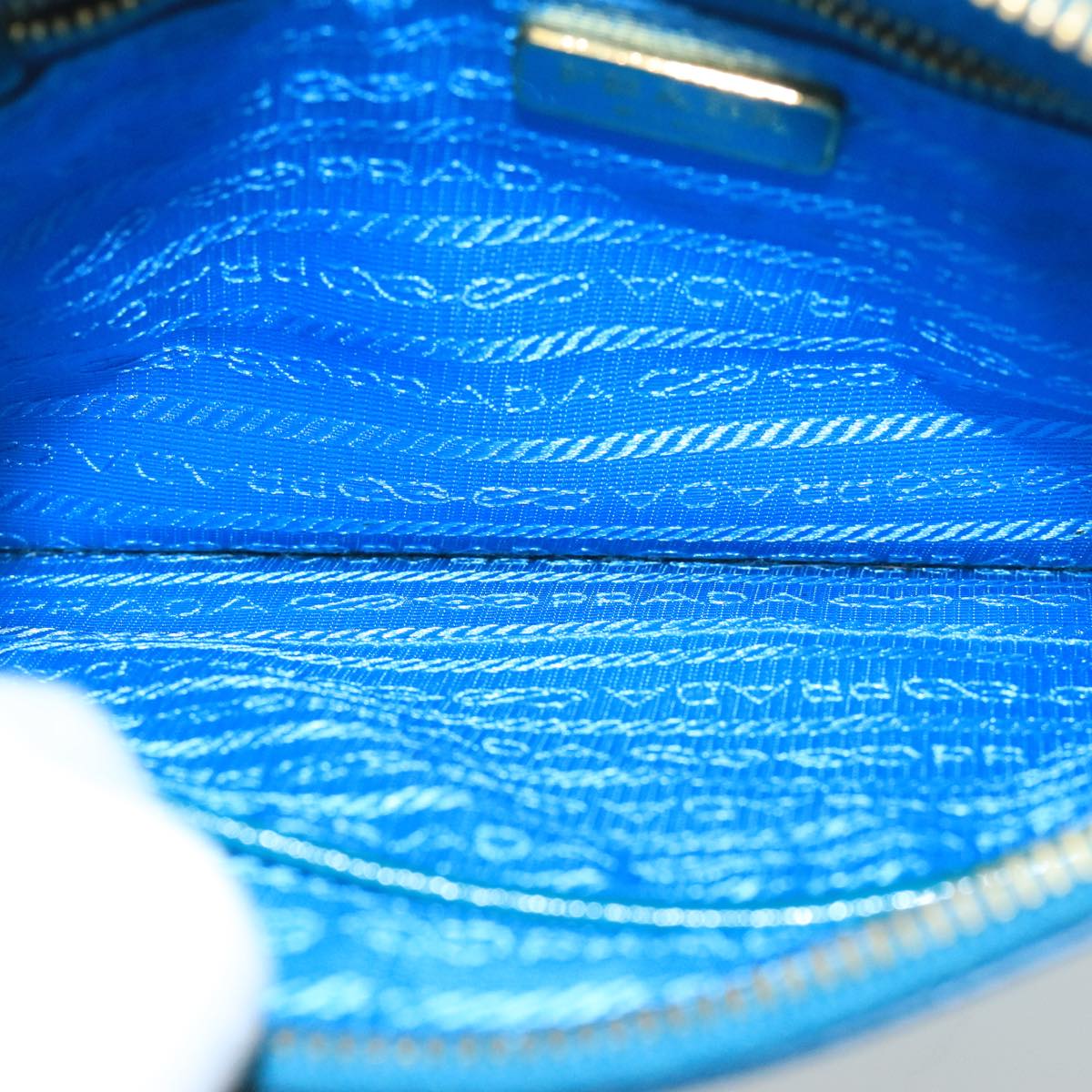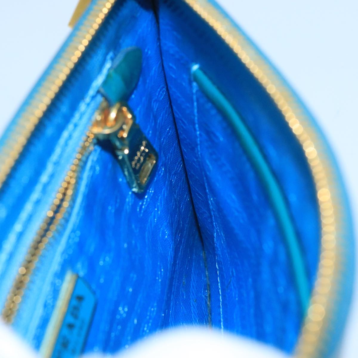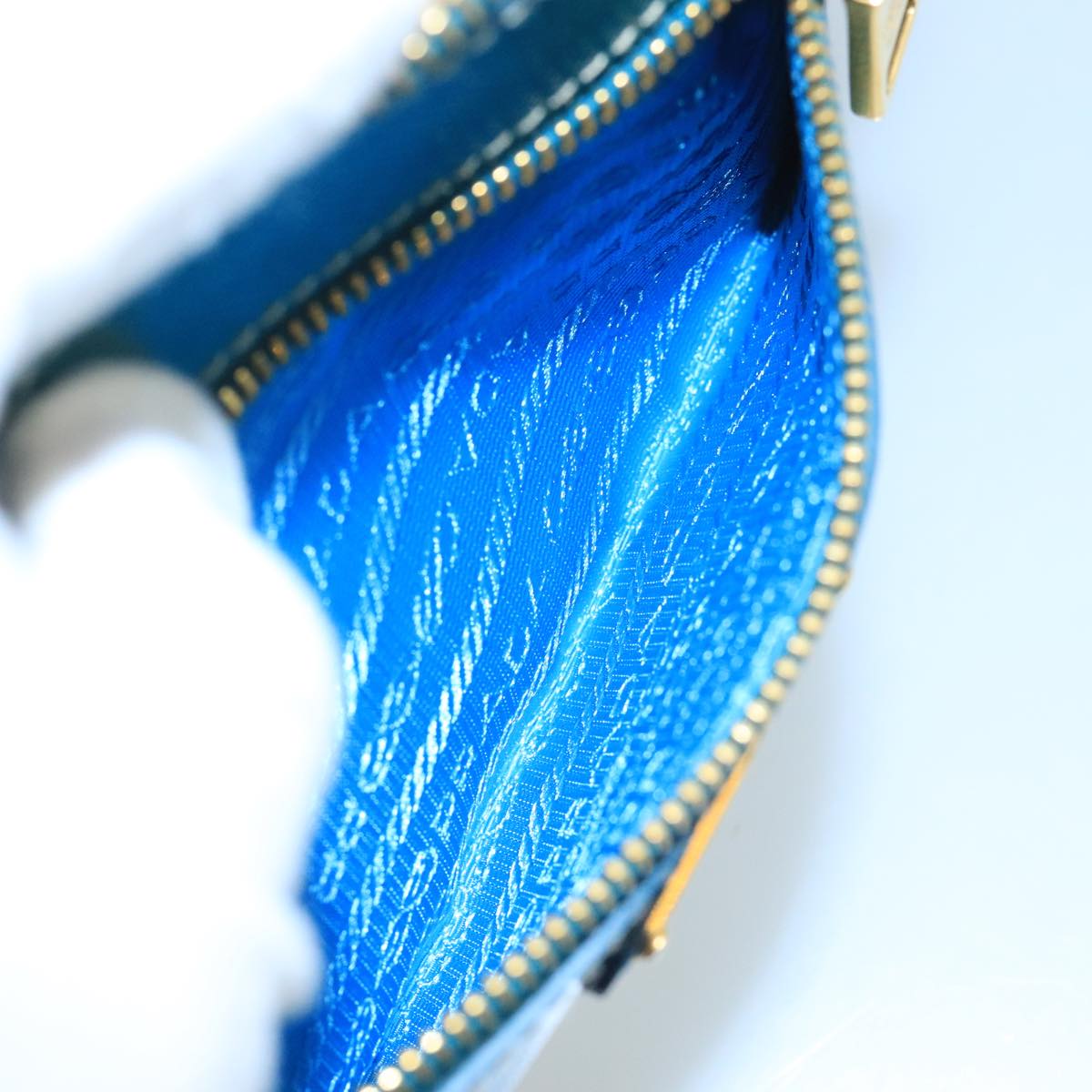 PRADA Shoulder Bag Safiano leather Turquoise Blue Gold Auth 96244