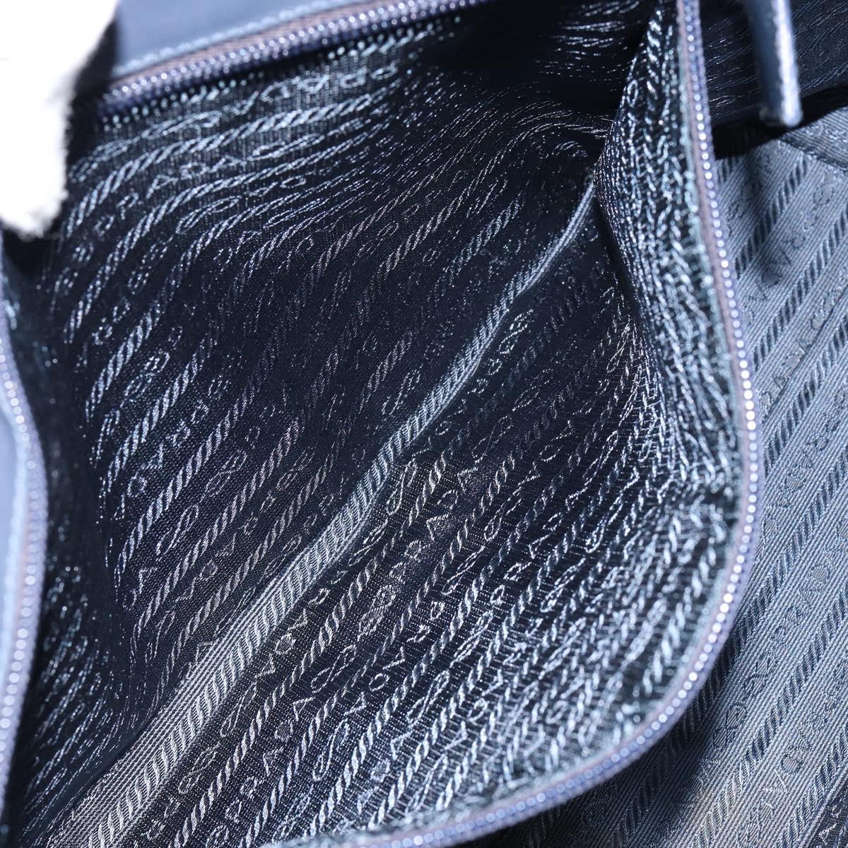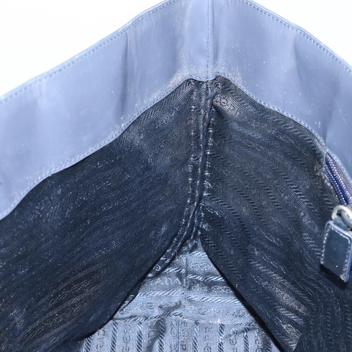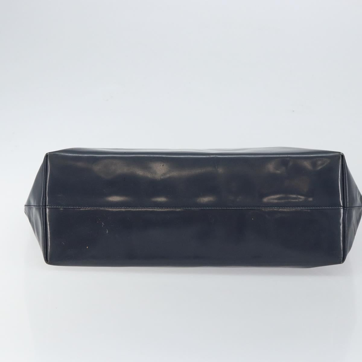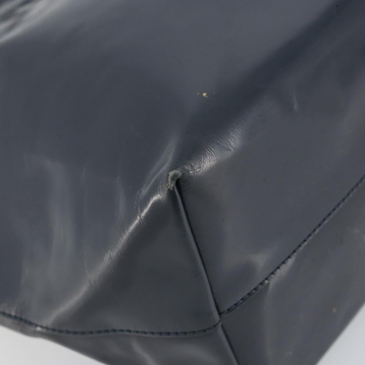 PRADA Tote Bag Enamel Navy Silver Auth 146022