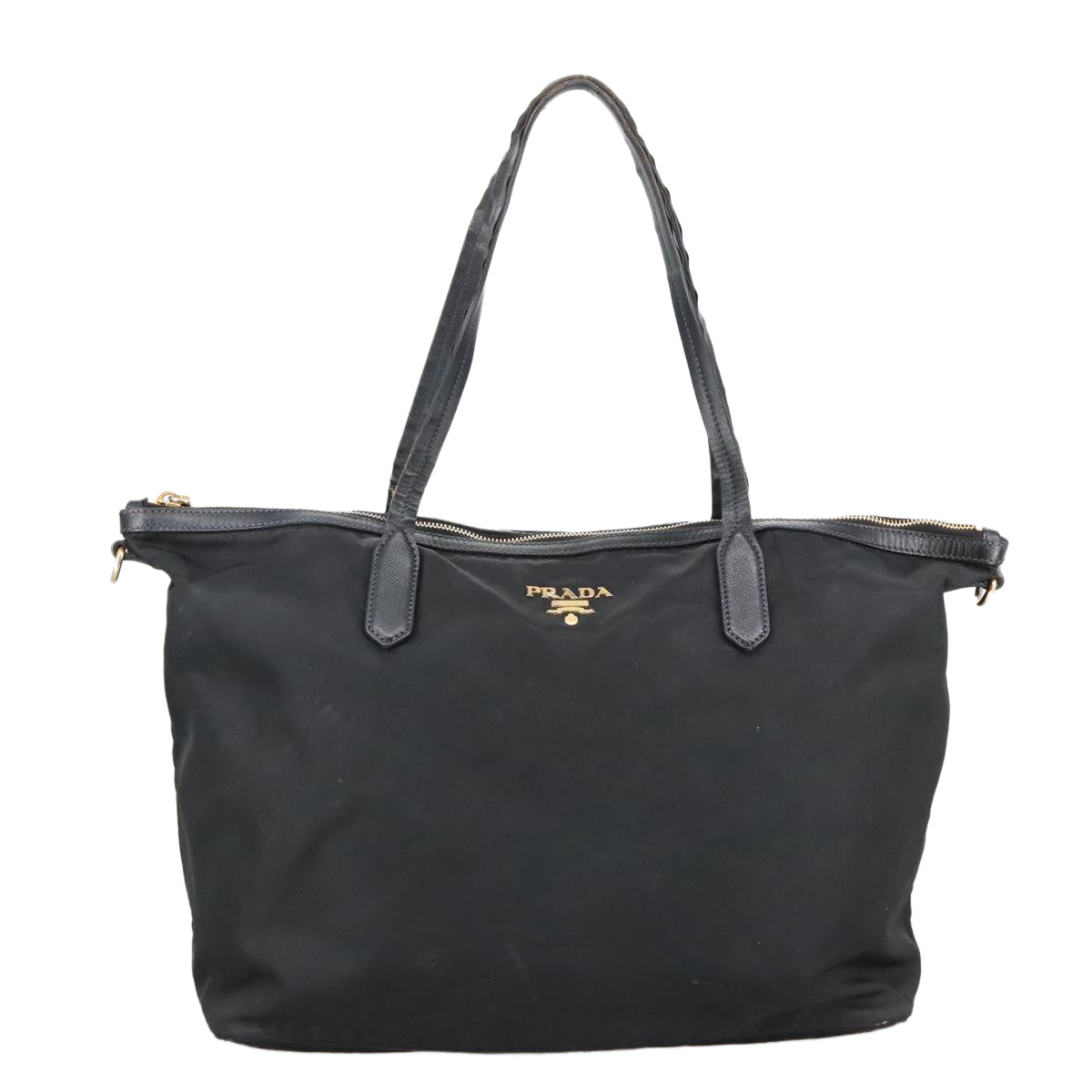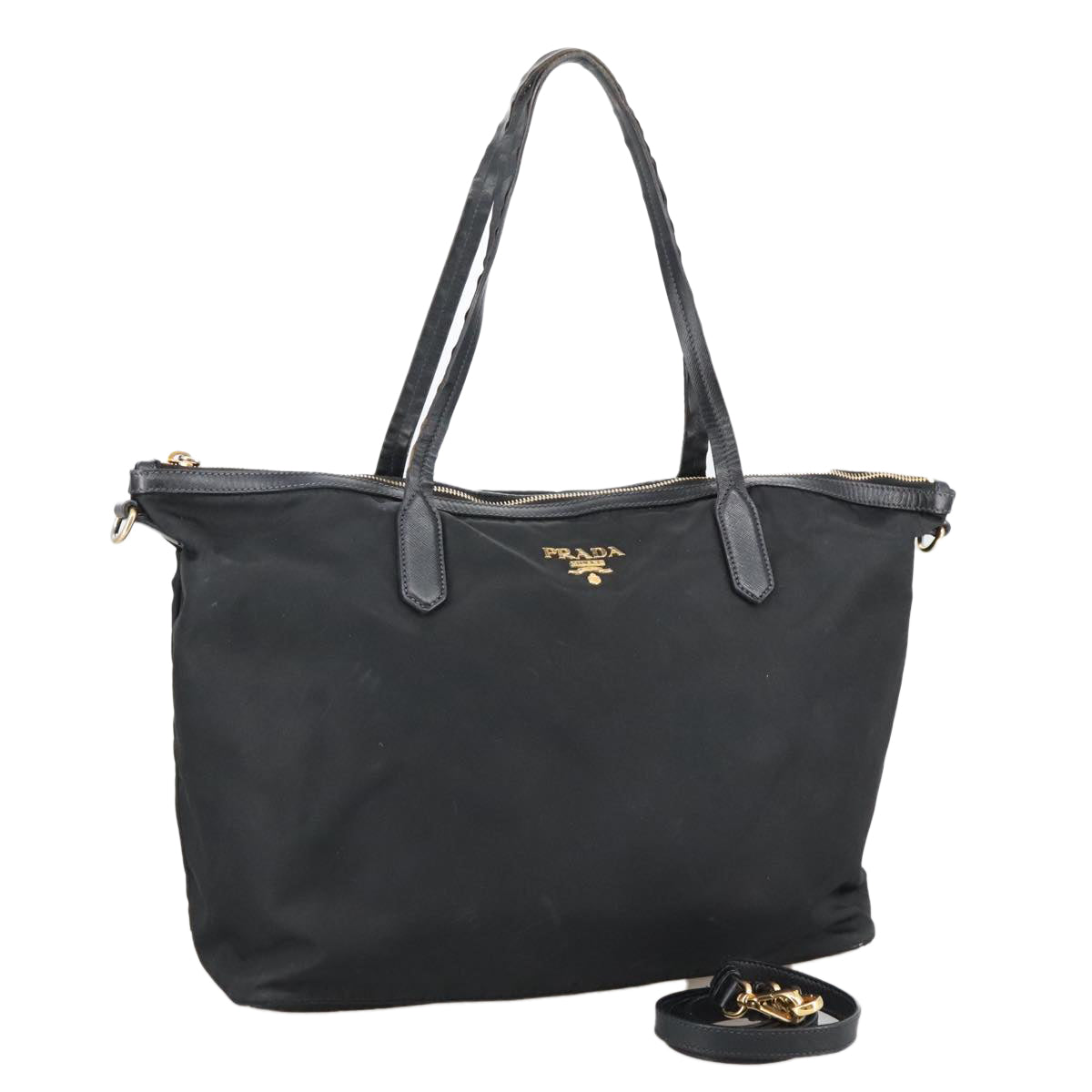 PRADA Tote Bag Nylon 2way Black Silver Auth 104589