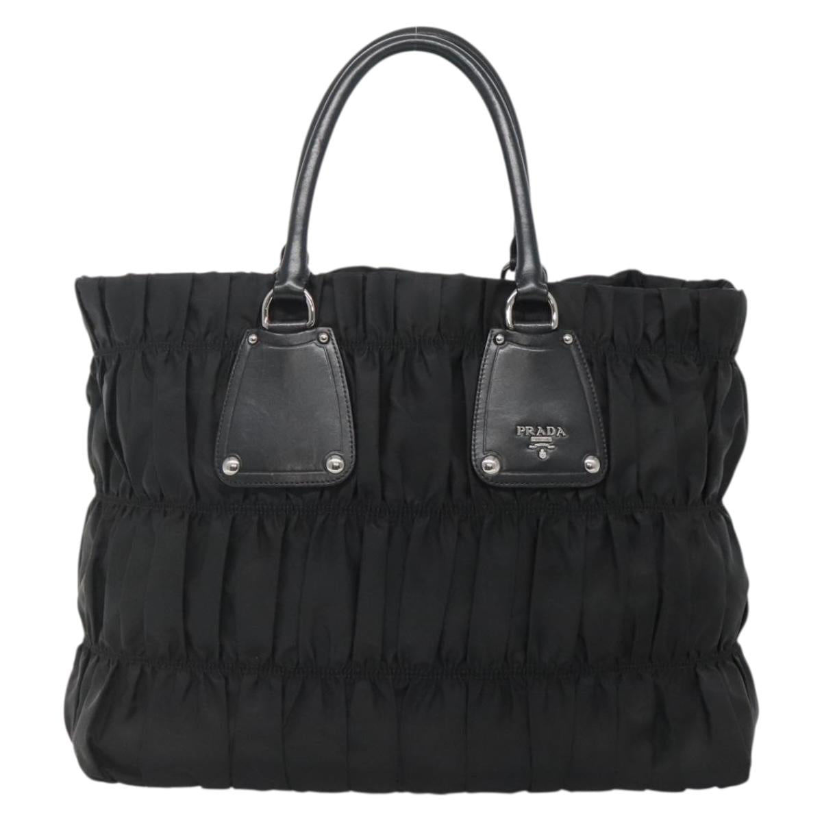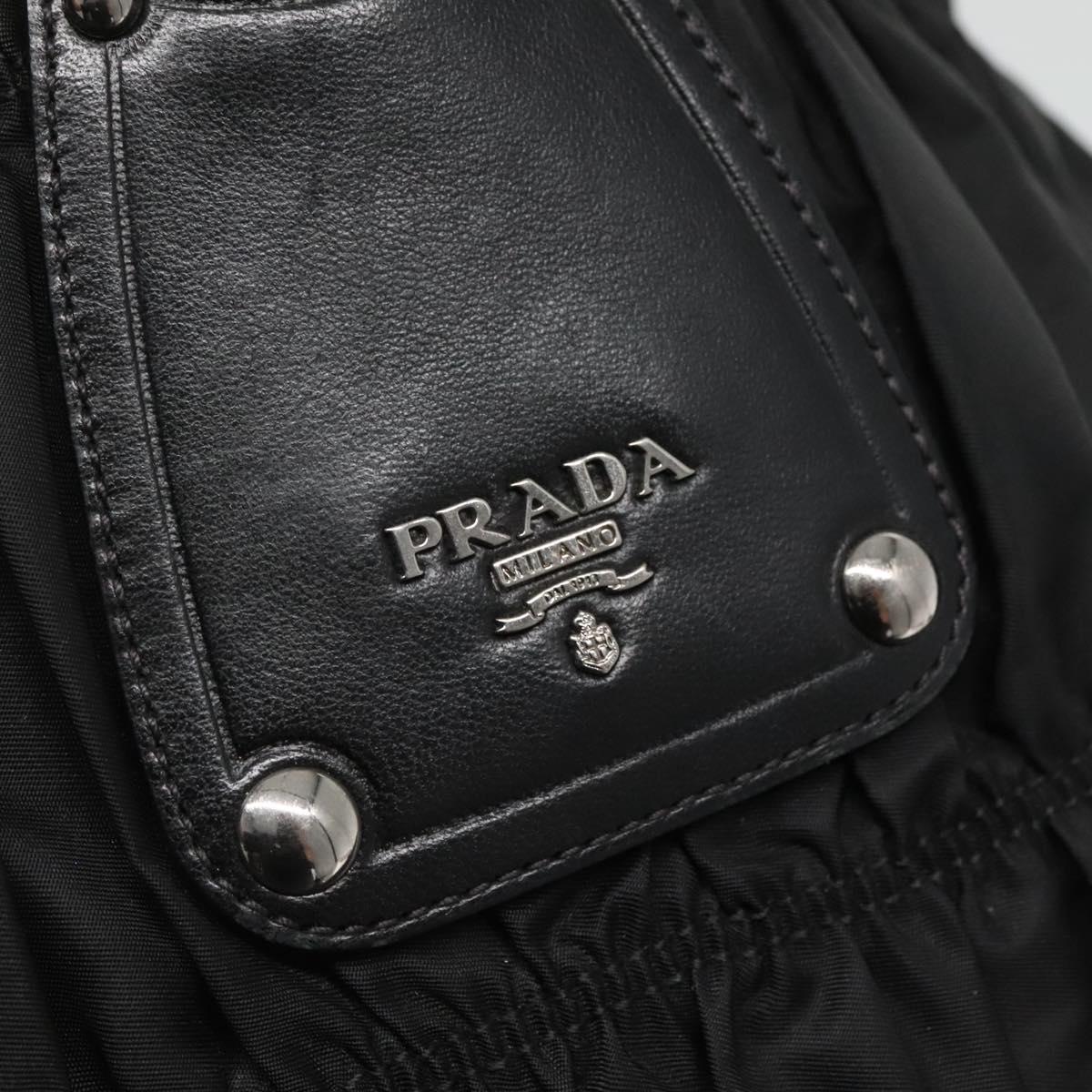 PRADA Tote Bag Nylon Black Silver Auth ep10543
