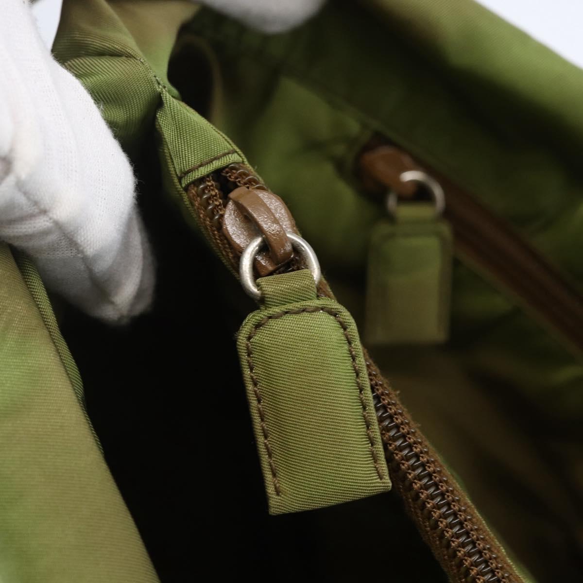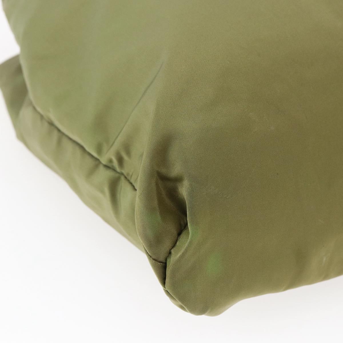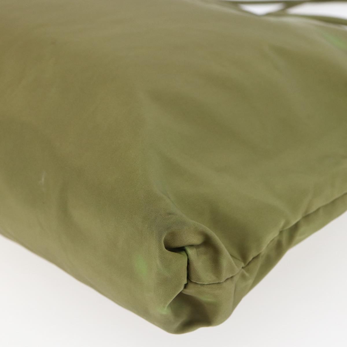 PRADA Tote Bag Nylon Khaki Silver Auth BA6878