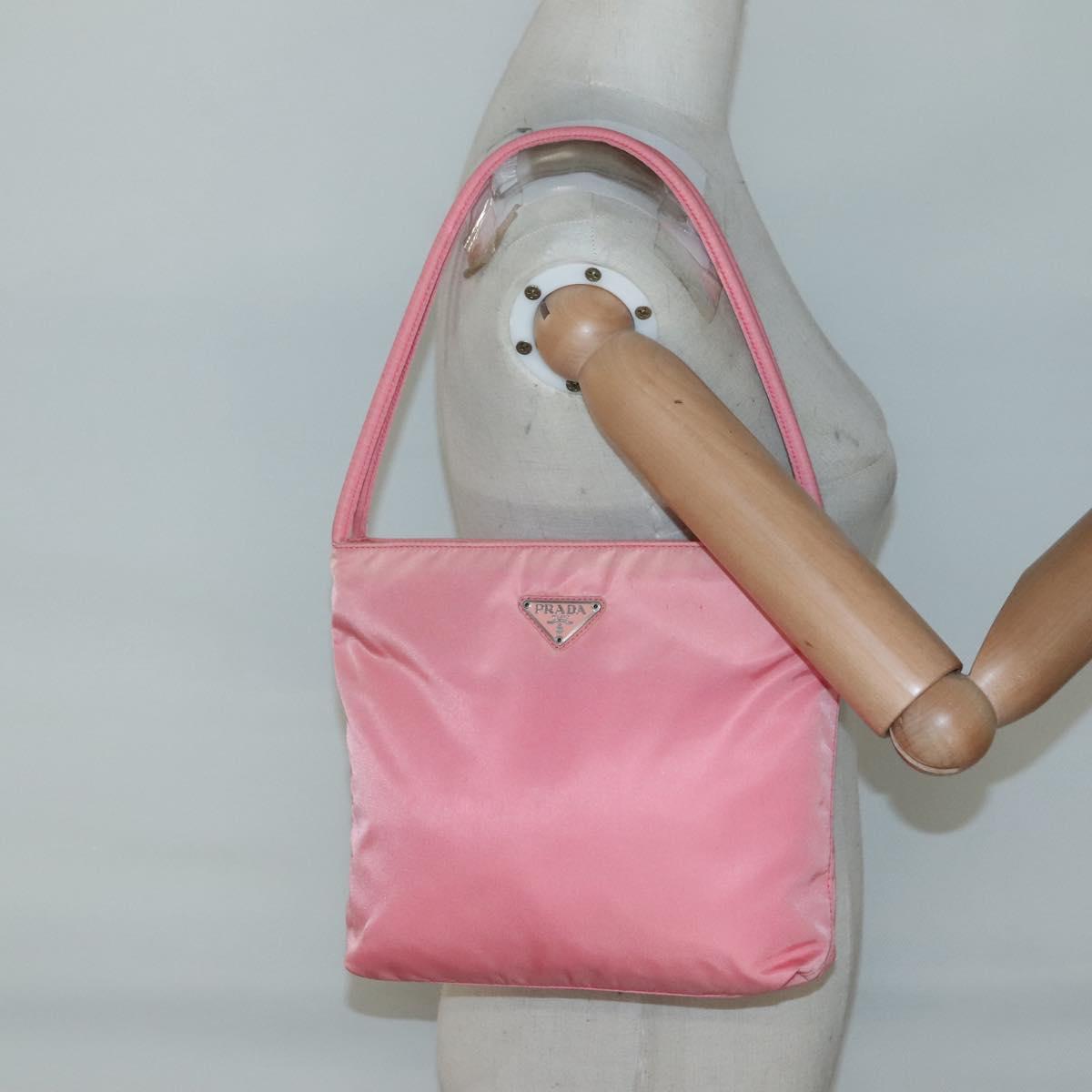 PRADA Tote Bag Nylon Pink Silver Auth 139941