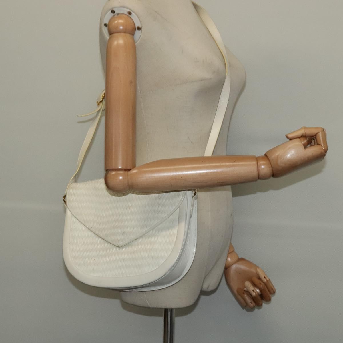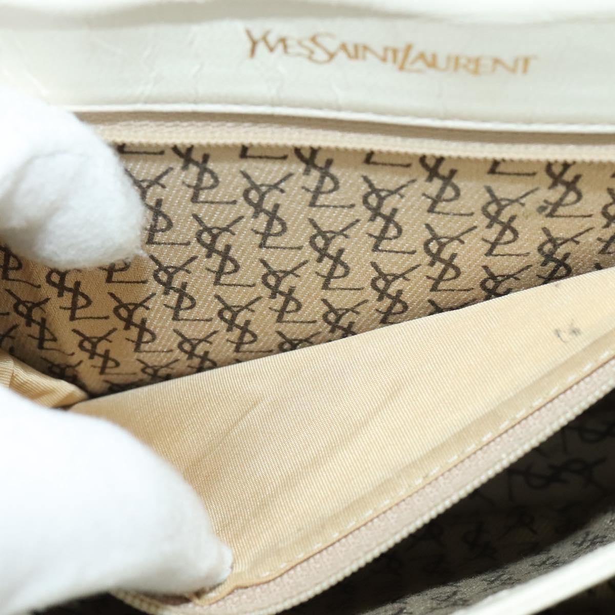 SAINT LAURENT Shoulder Bag Leather White Gold Auth ep10622