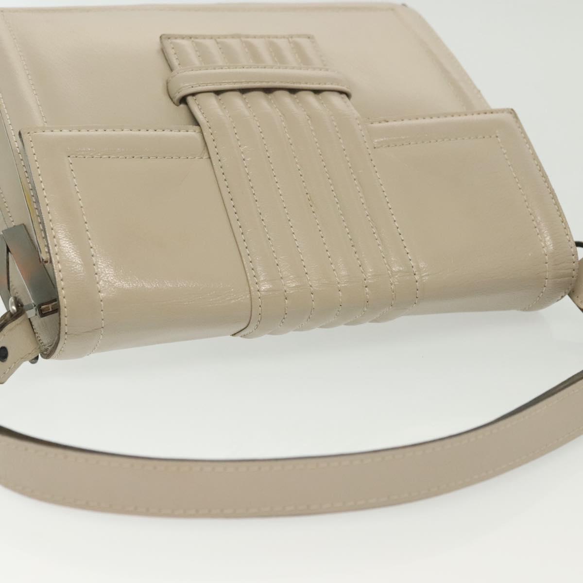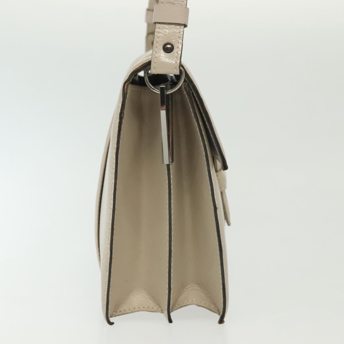 SAINT LAURENT Shoulder Bag Leather White Silver Auth yk19372