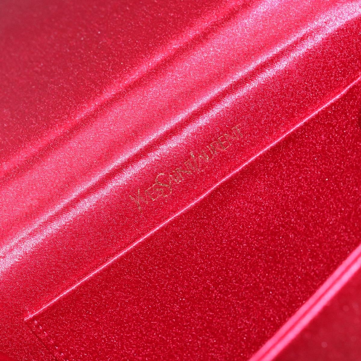 SAINT LAURENT Shoulder Bag Satin Red Gold Auth BA5345