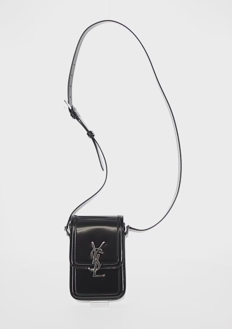 SAINT LAURENT Solferino Shoulder Bag Patent leather Black Silver Auth 148457SAM