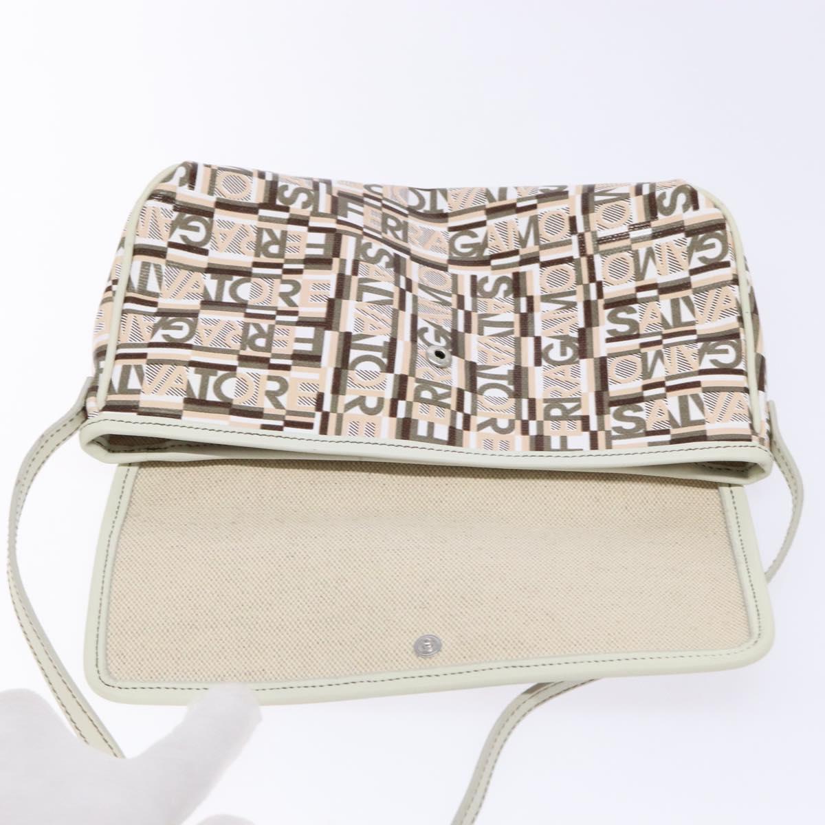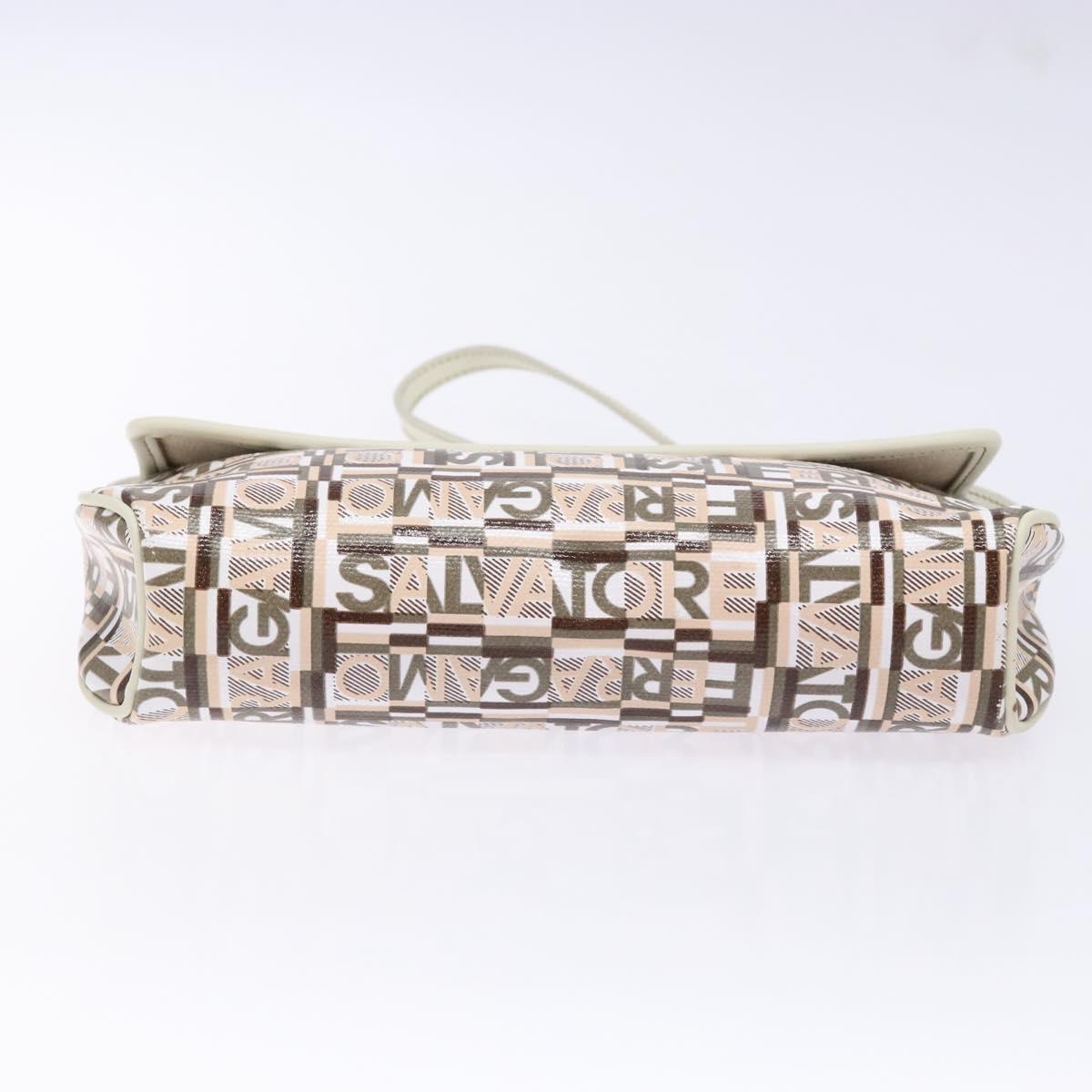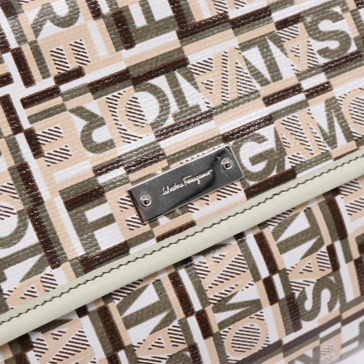 Salvatore Ferragamo Accessory Pouch PVC Beige Silver Auth BA5509
