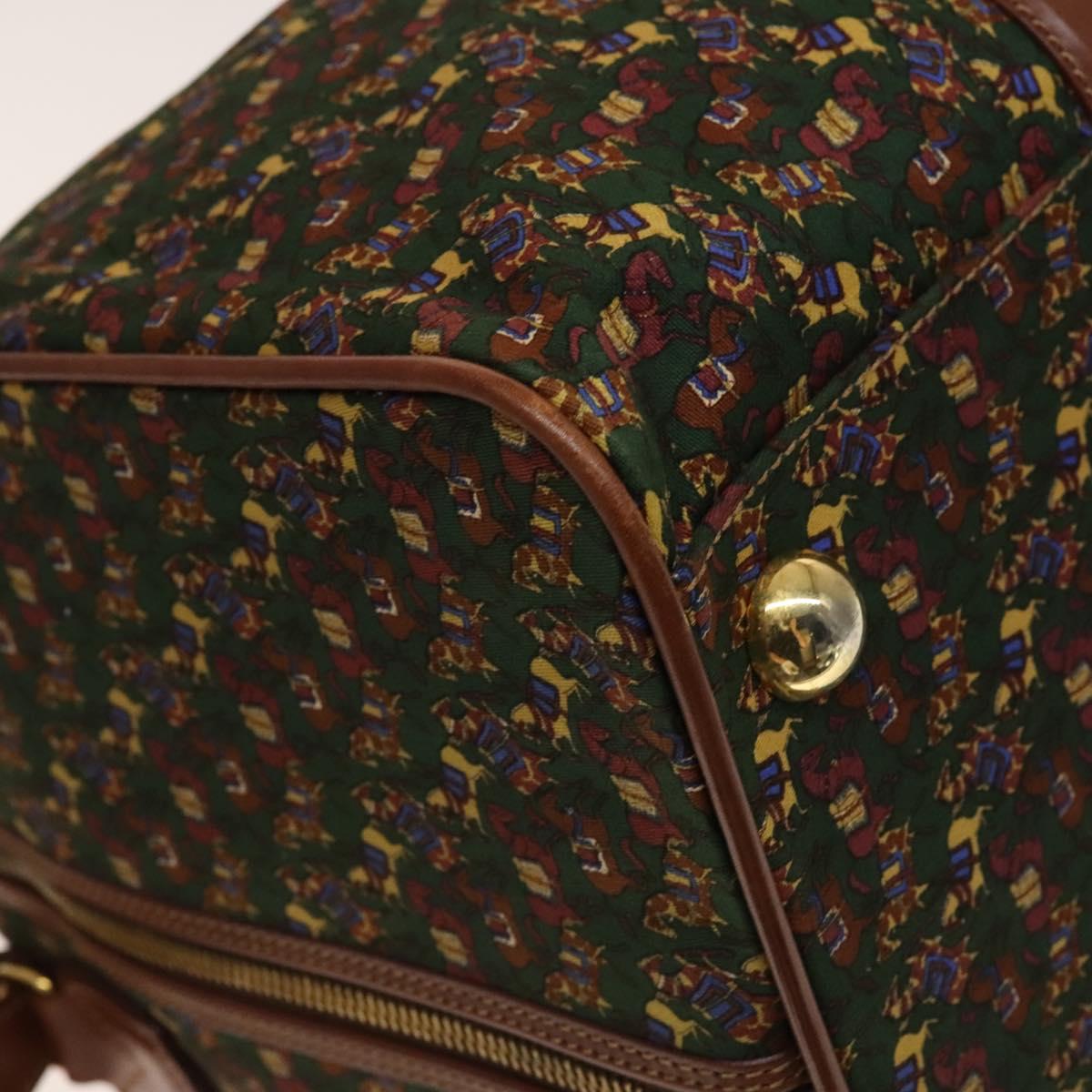 Salvatore Ferragamo Boston Bag Canvas Leather 2way Green Brown gold Auth bs28921
