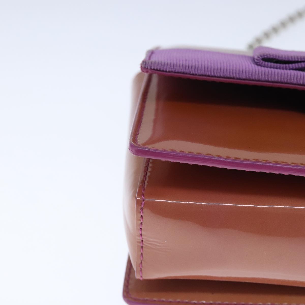 Salvatore Ferragamo Chain Shoulder Bag Enamel Purple Silver Auth 102708