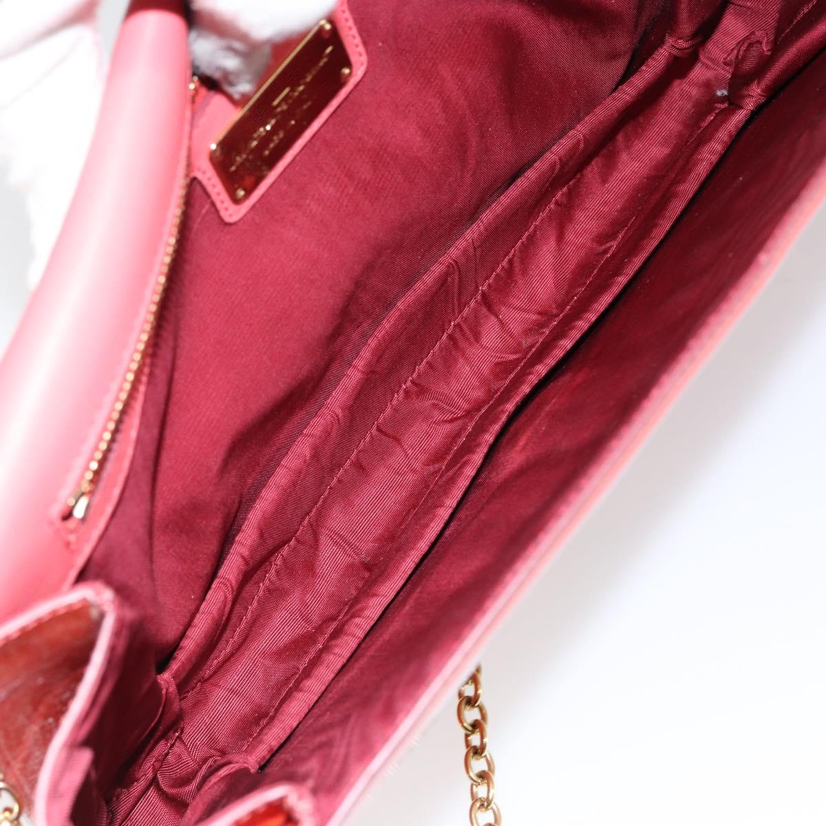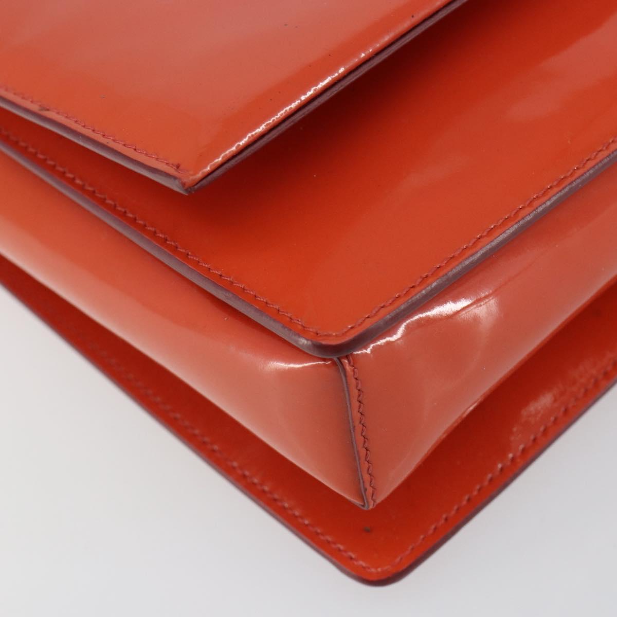 Salvatore Ferragamo Chain Vala Shoulder Bag Enamel Orange Gold Auth BA6593
