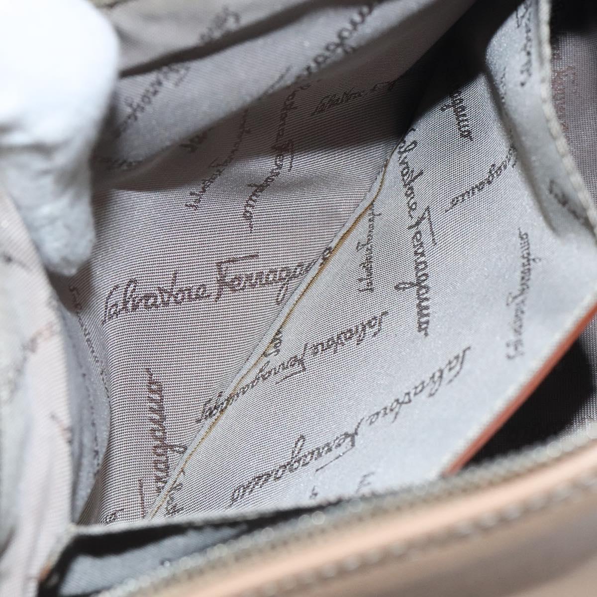 Salvatore Ferragamo Gancini Accessory Pouch Leather Beige Silver Auth bs27288