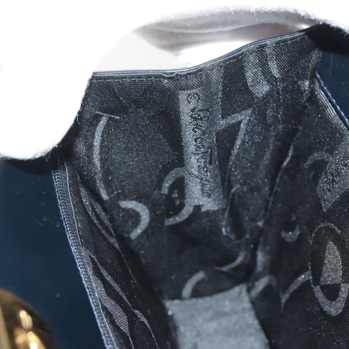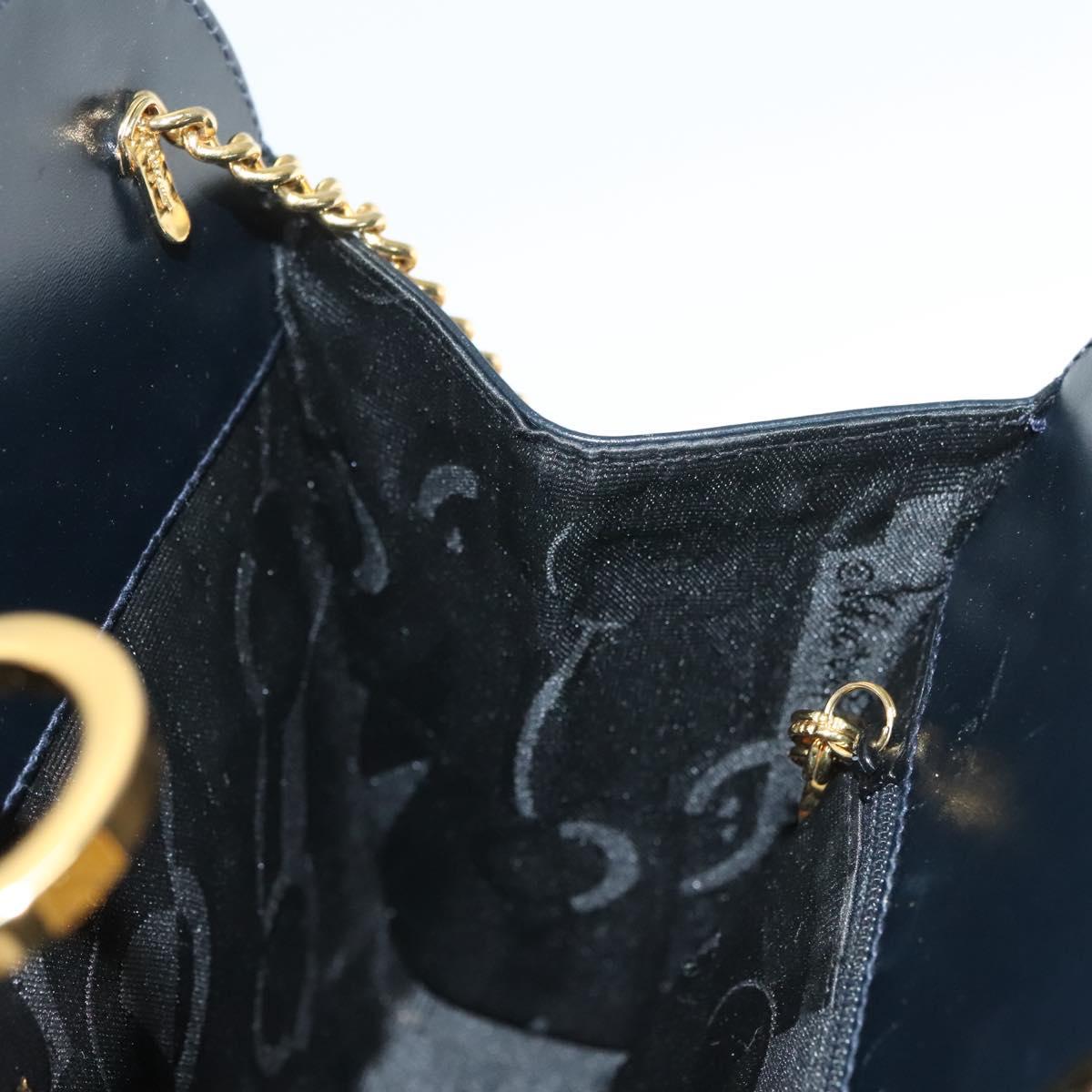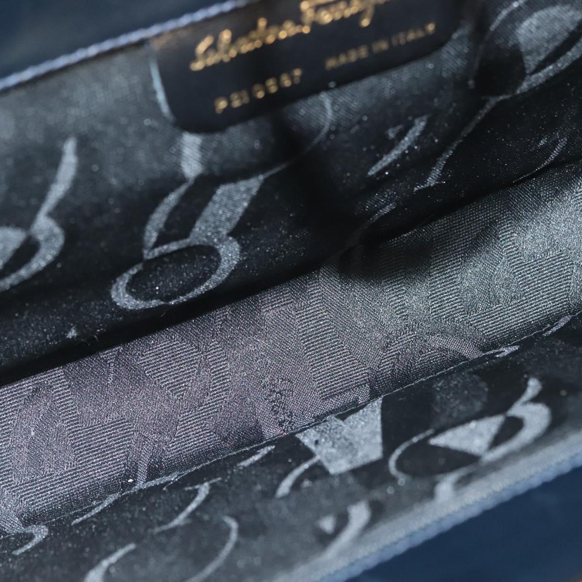 Salvatore Ferragamo Gancini Chain Shoulder Bag Leather Black Gold Auth 130866
