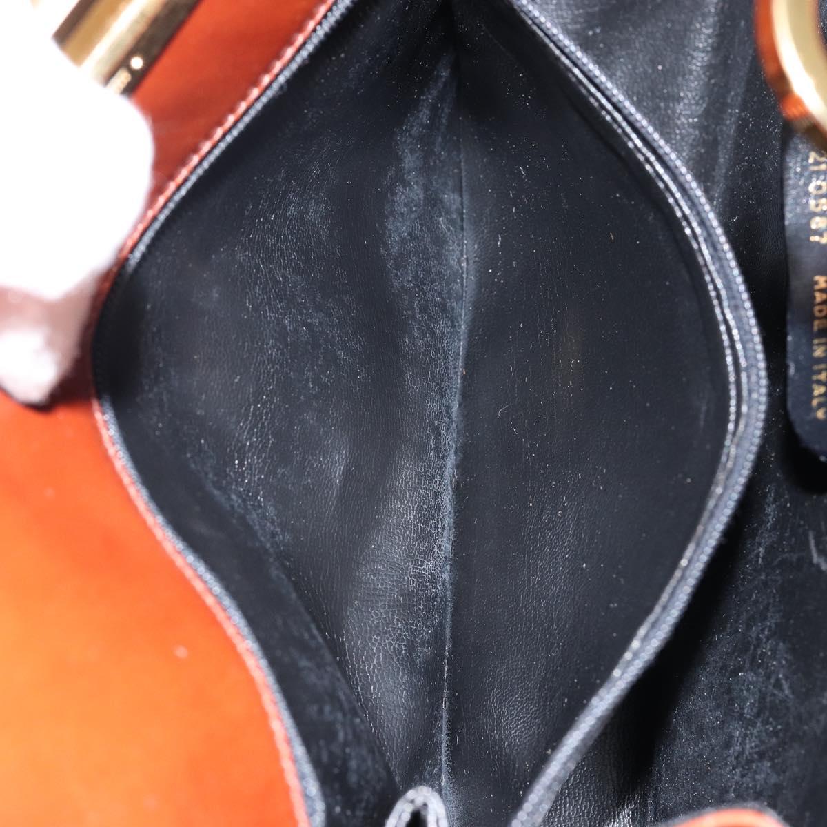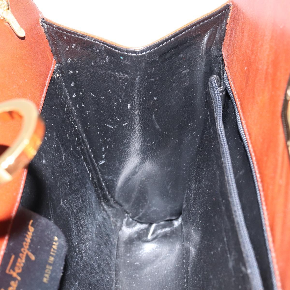 Salvatore Ferragamo Gancini Chain Shoulder Bag Leather Brown Gold Auth BA6585
