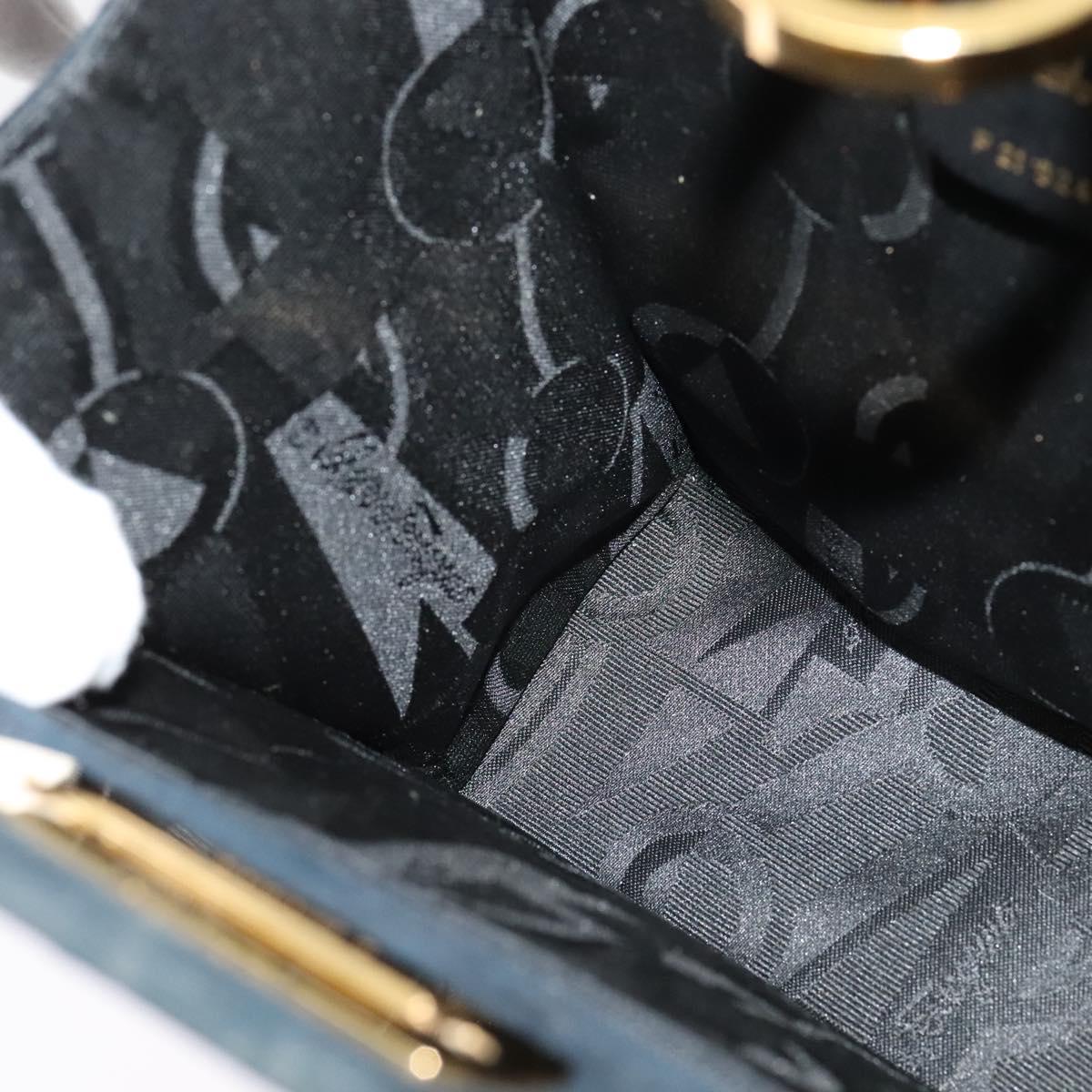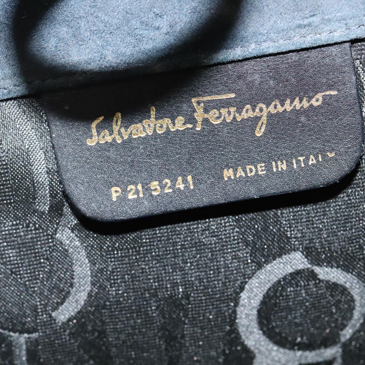 Salvatore Ferragamo Gancini Chain Shoulder Bag Suede Black Gold Auth 140965
