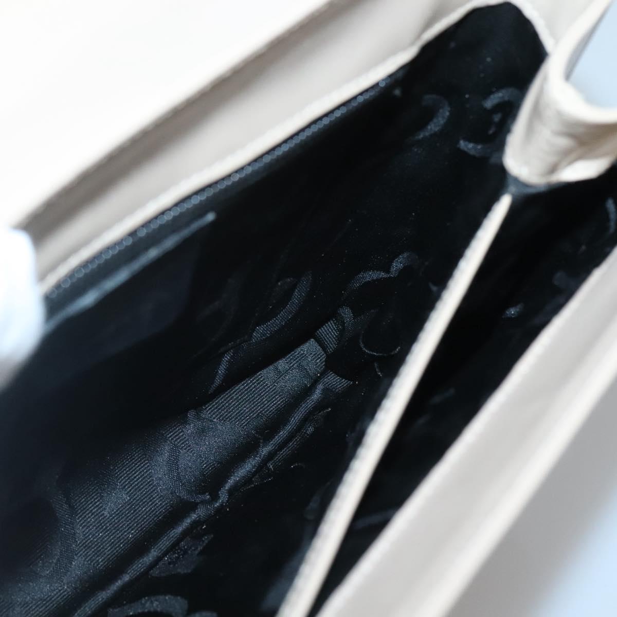 Salvatore Ferragamo Gancini Hand Bag Leather 2way Beige Gold Auth gh629