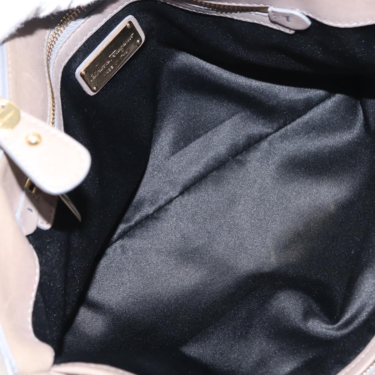 Salvatore Ferragamo Gancini Hand Bag Leather 2way Beige Gold Auth sw1593