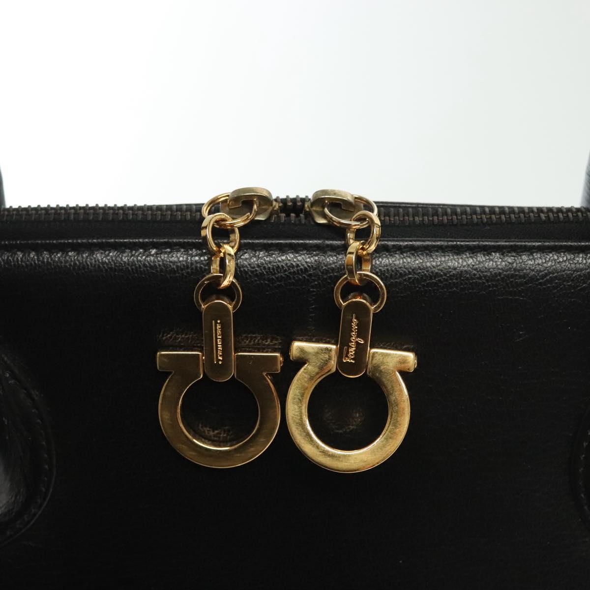 Salvatore Ferragamo Gancini Hand Bag Leather 2way Black Gold Auth 140273