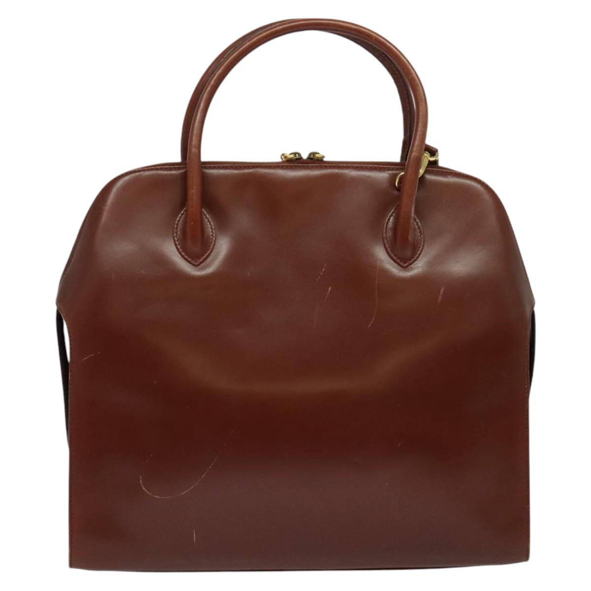 Salvatore Ferragamo Gancini Hand Bag Leather 2way Brown Gold Auth 140342