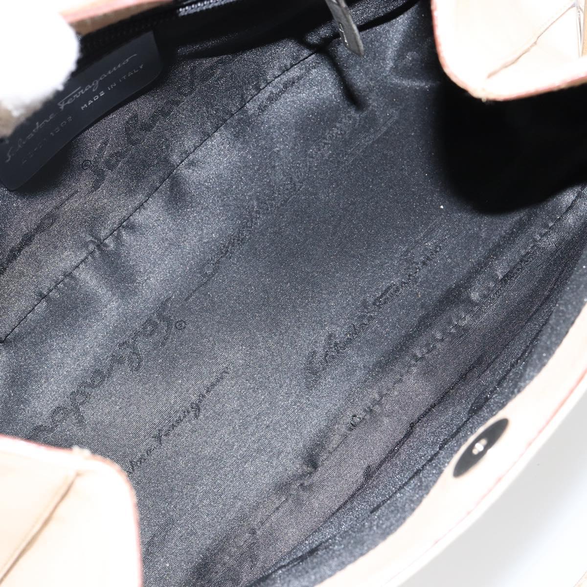 Salvatore Ferragamo Gancini Hand Bag Leather Beige Silver Auth hk2982
