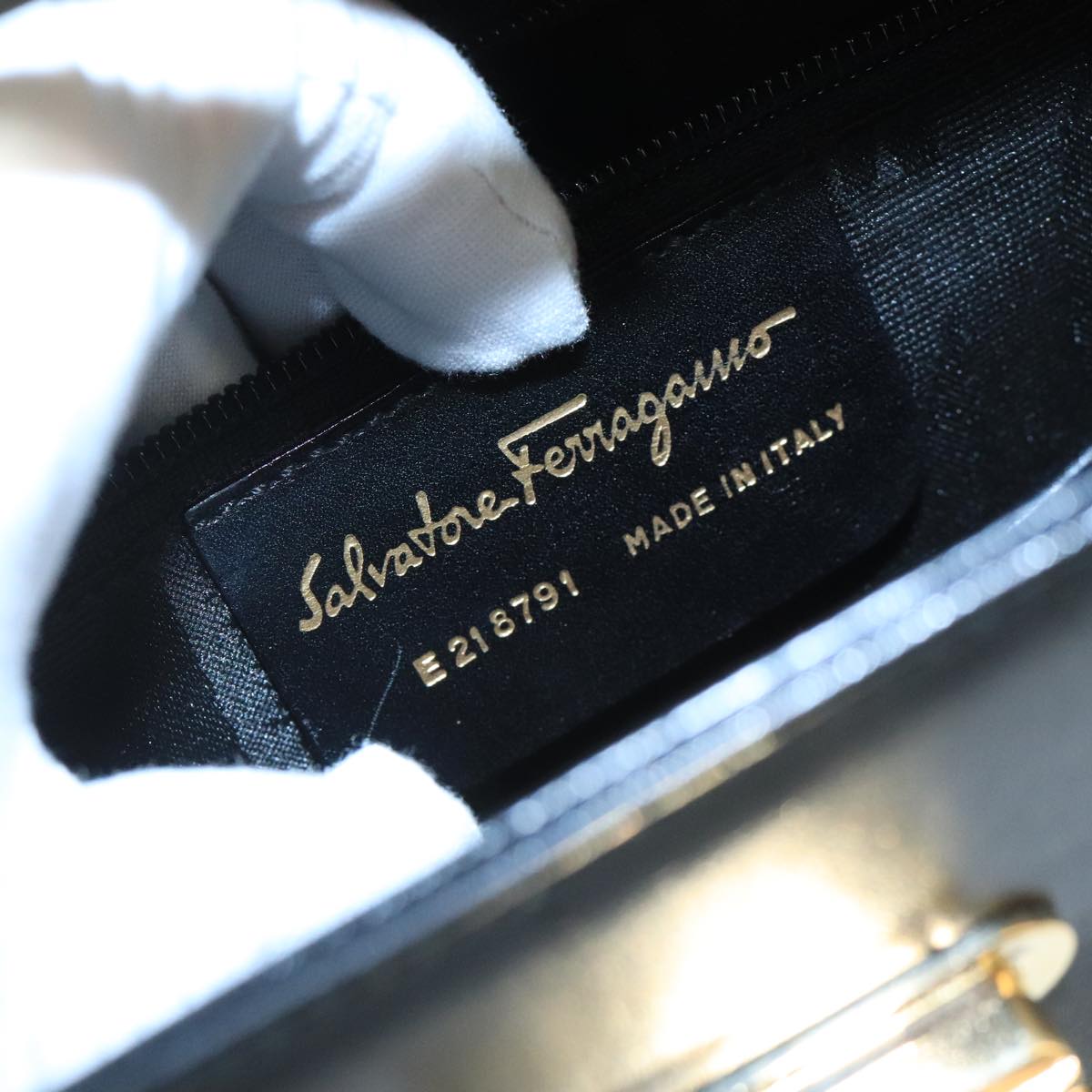 Salvatore Ferragamo Gancini Hand Bag Leather Black Gold Auth bs19613