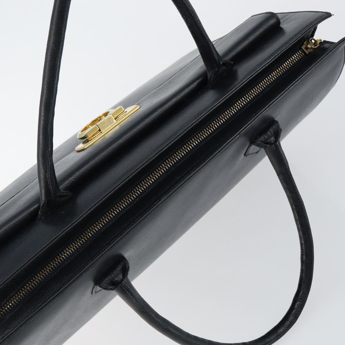 Salvatore Ferragamo Gancini Hand Bag Leather Black Gold Auth bs29837
