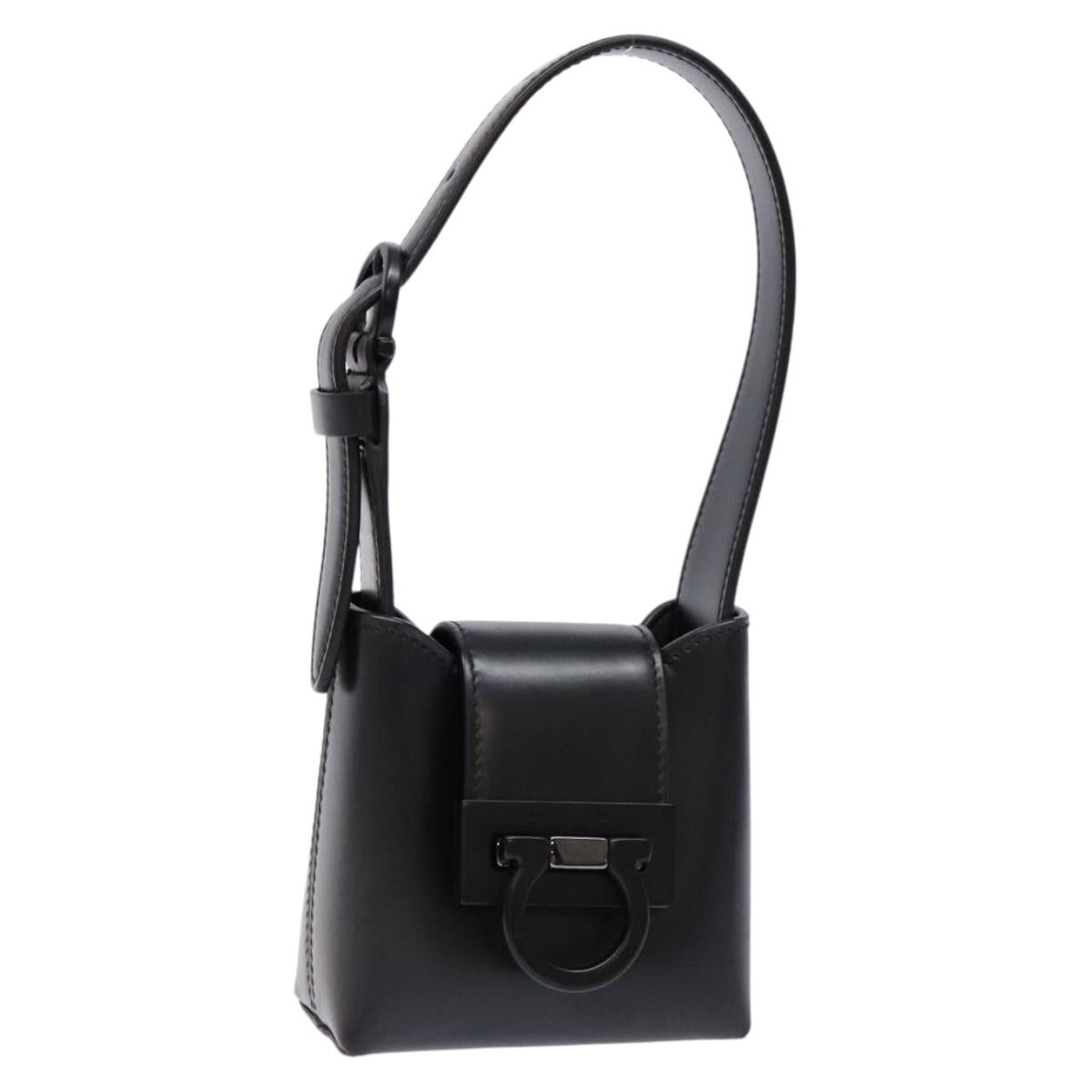 Salvatore Ferragamo Gancini Hand Bag Leather Black Silver Auth 137178