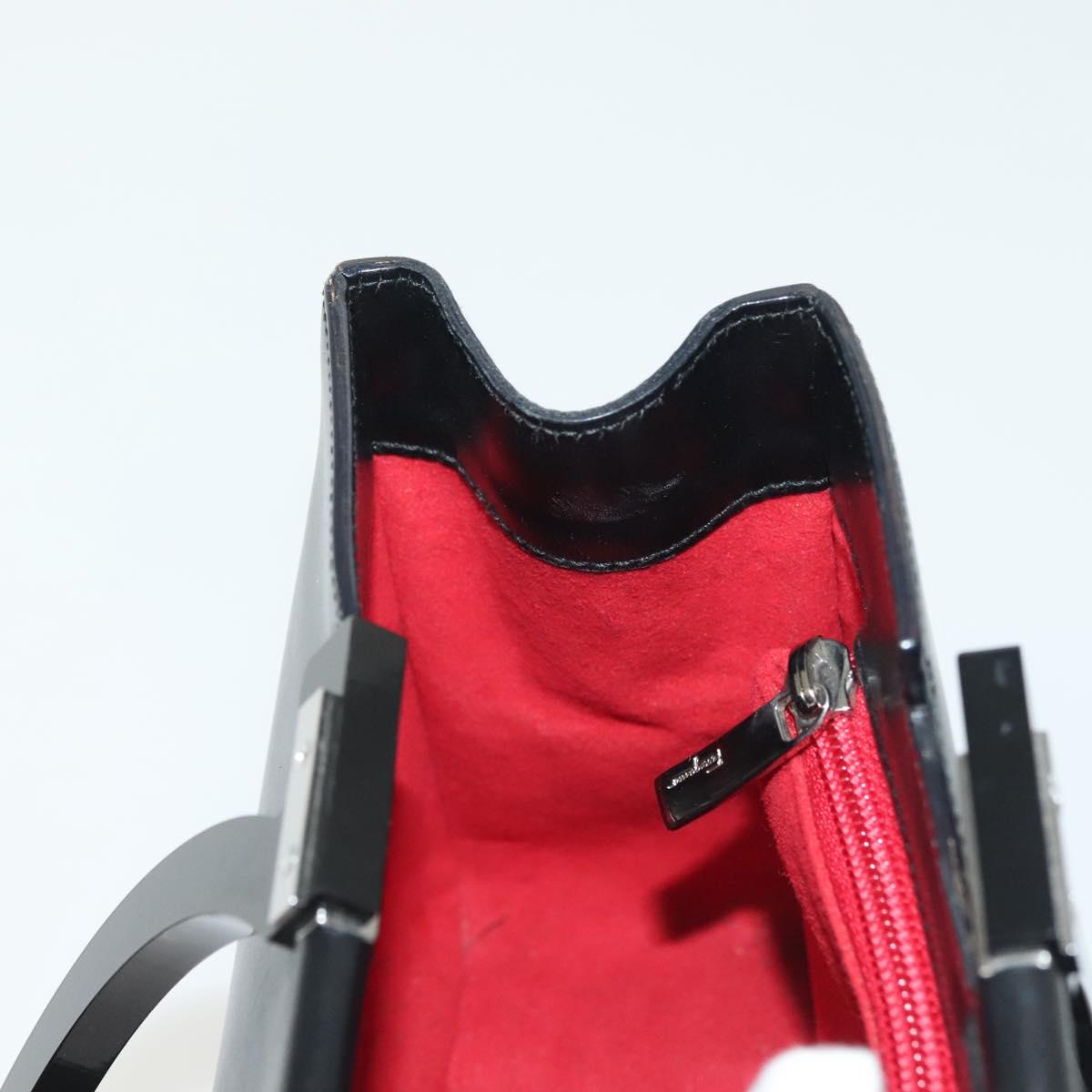 Salvatore Ferragamo Gancini Hand Bag Leather Black Silver Auth 140309