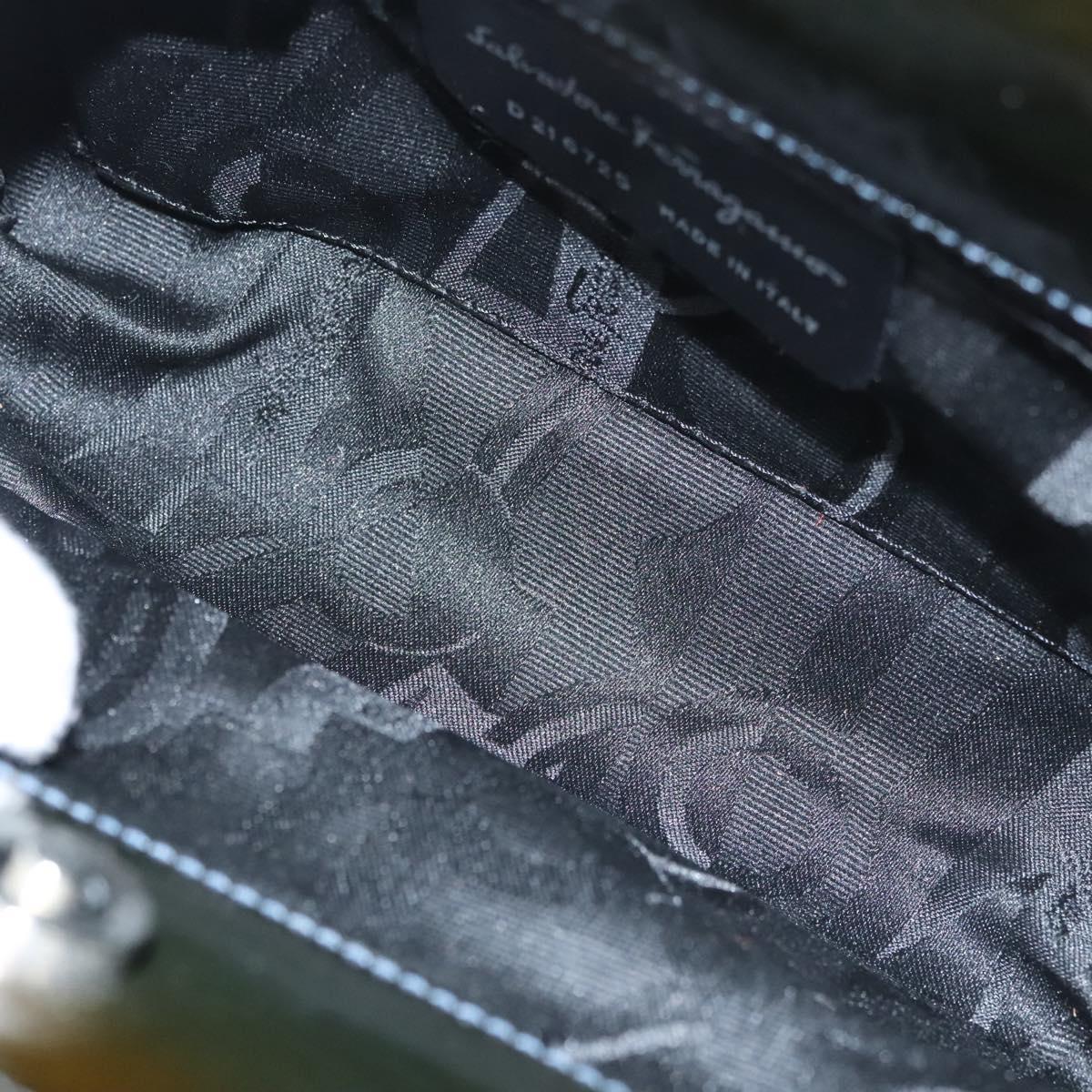 Salvatore Ferragamo Gancini Hand Bag Patent leather 2way Black Auth 120199