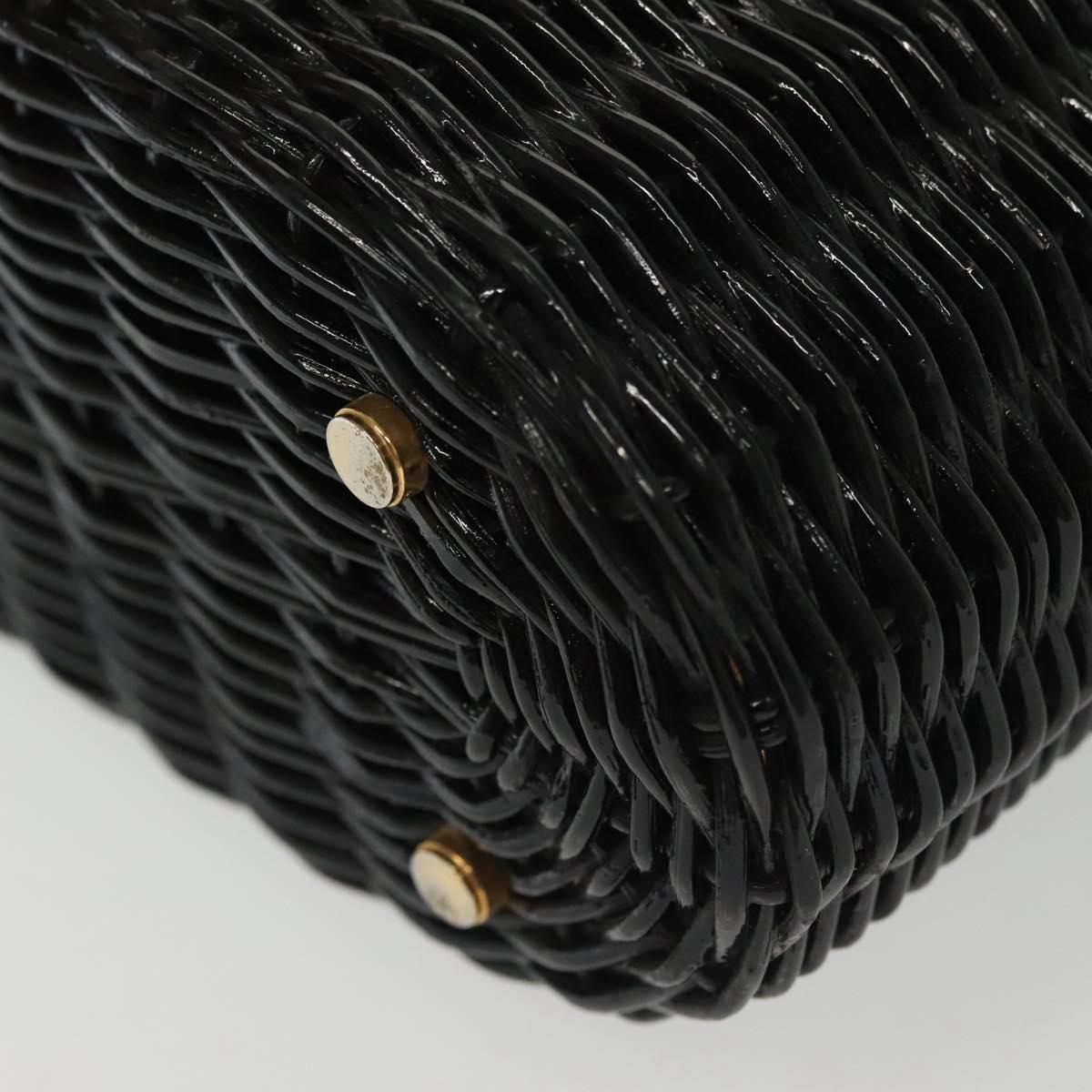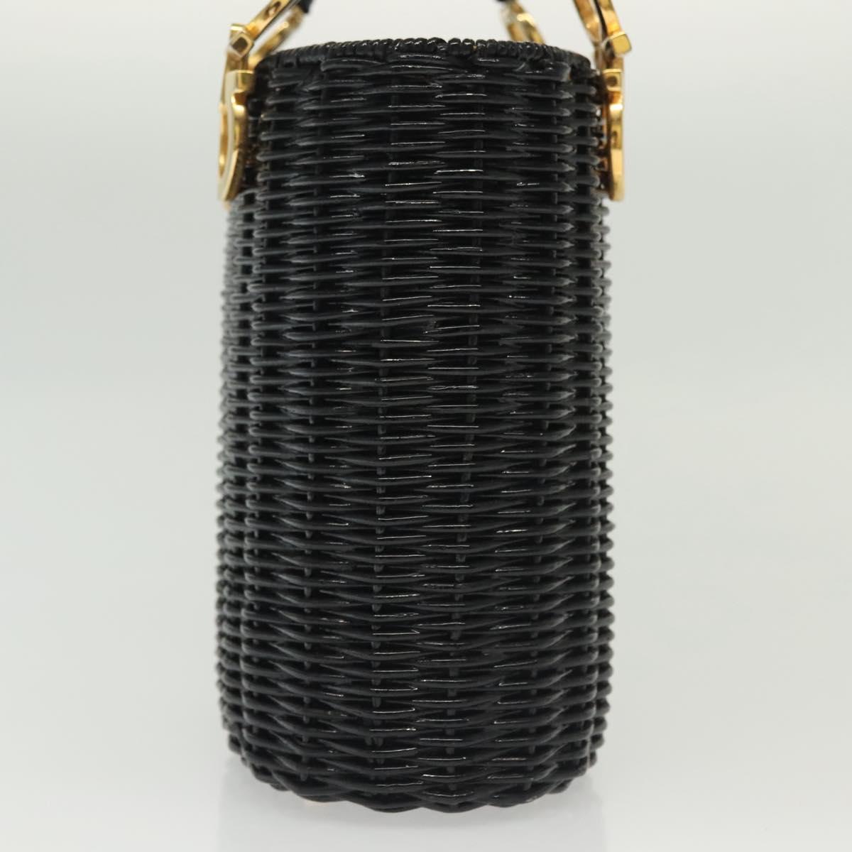 Salvatore Ferragamo Gancini Hand Bag Rattan Black Gold Auth 138876A