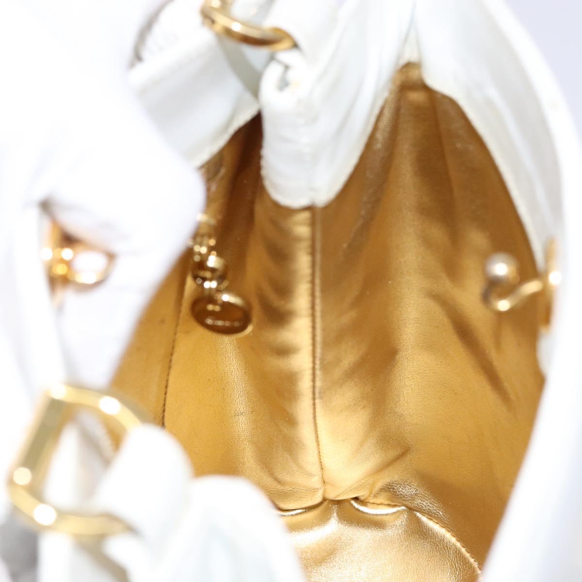 Salvatore Ferragamo Gancini Hand Bag Rattan White Gold Auth 141821