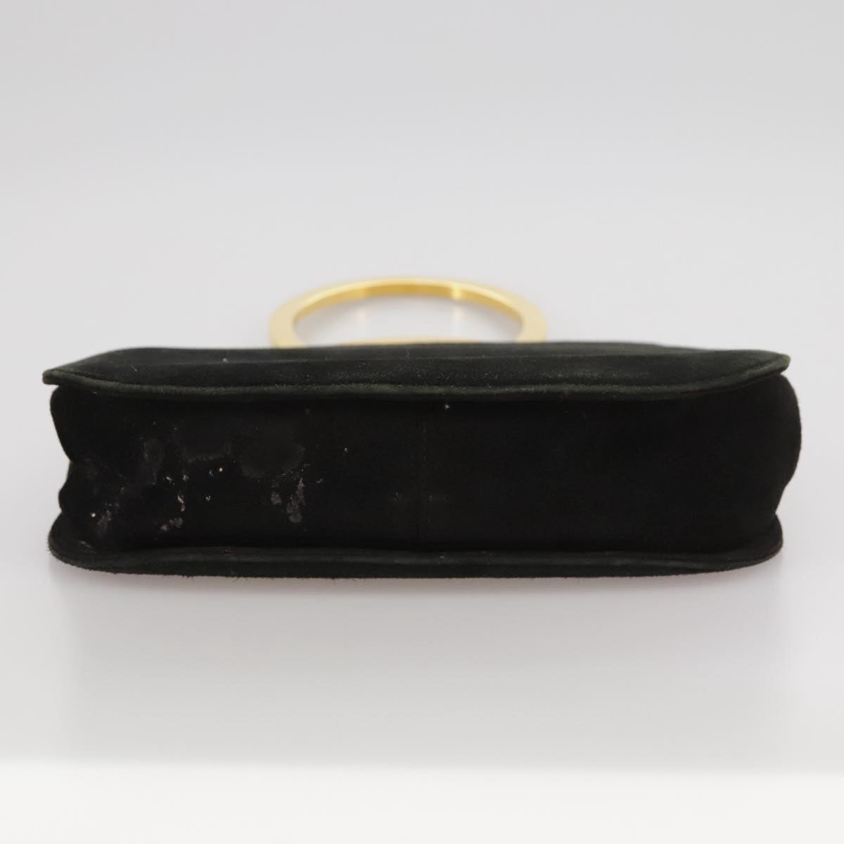 Salvatore Ferragamo Gancini Hand Bag Suede 2way Black Gold Auth 101932