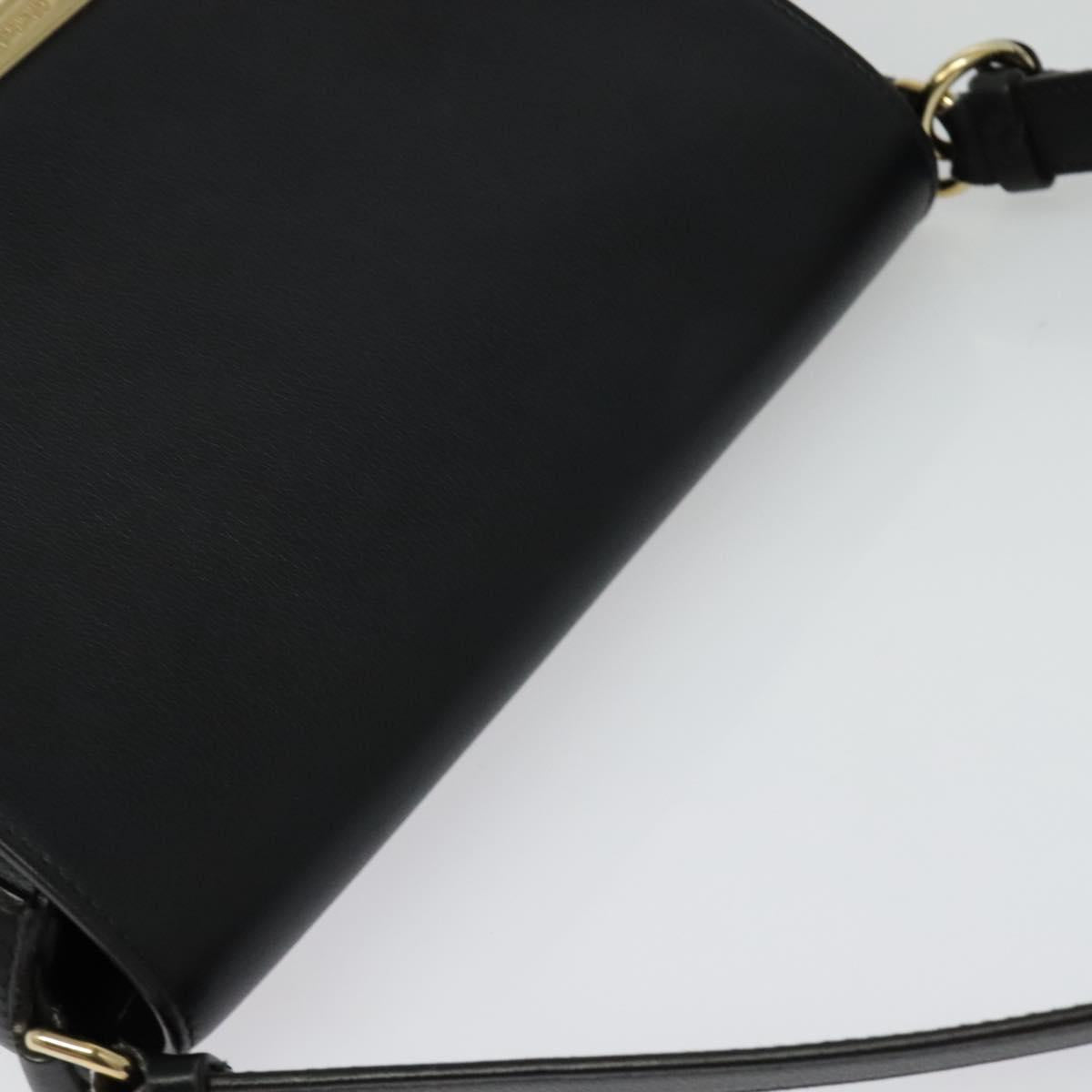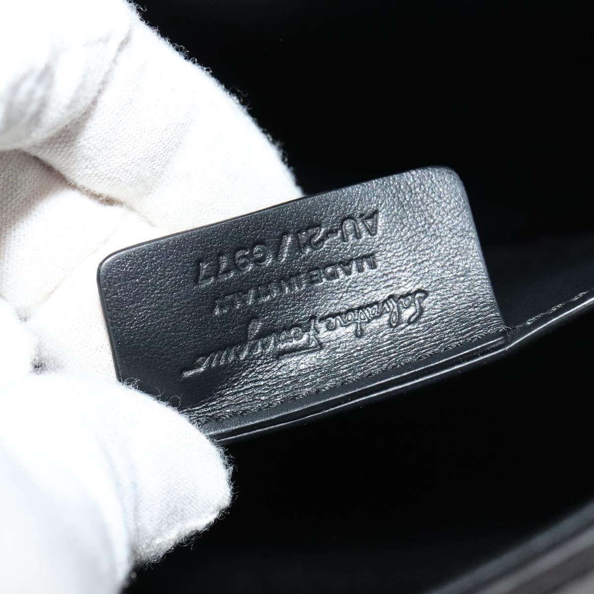 Salvatore Ferragamo Gancini Shoulder Bag Calf leather Black Gold Auth 127686