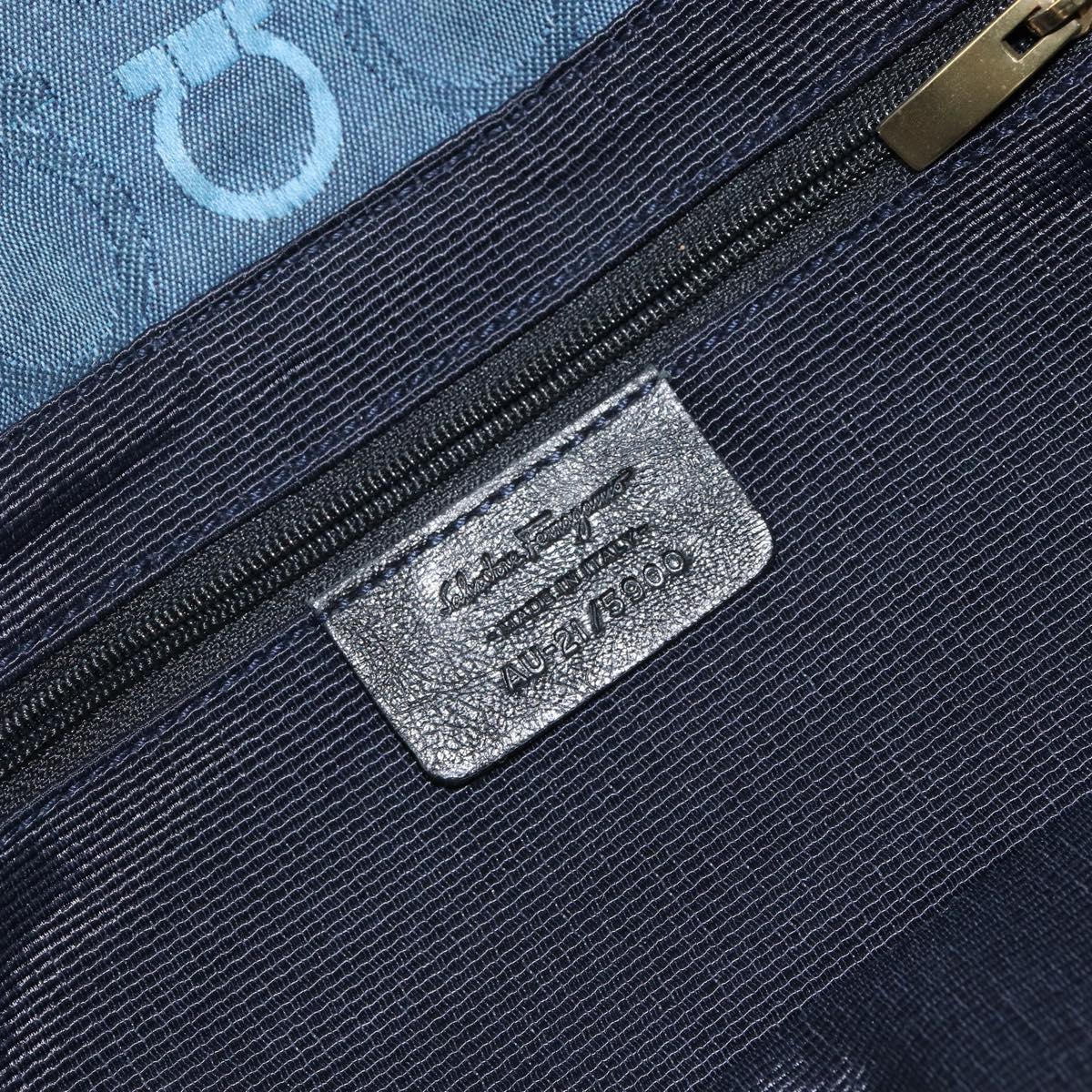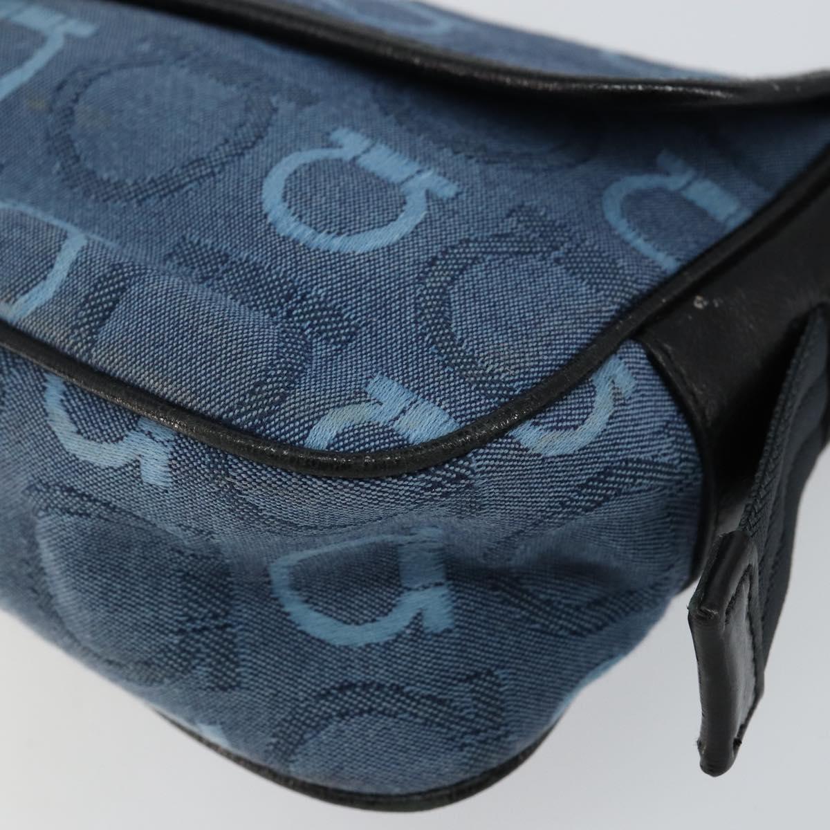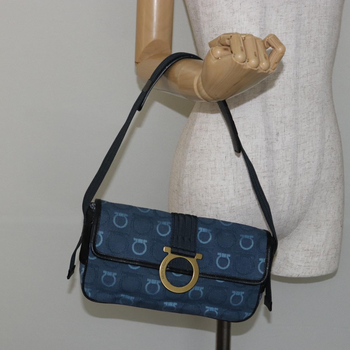Salvatore Ferragamo Gancini Shoulder Bag Canvas Navy Gold Auth BA5868