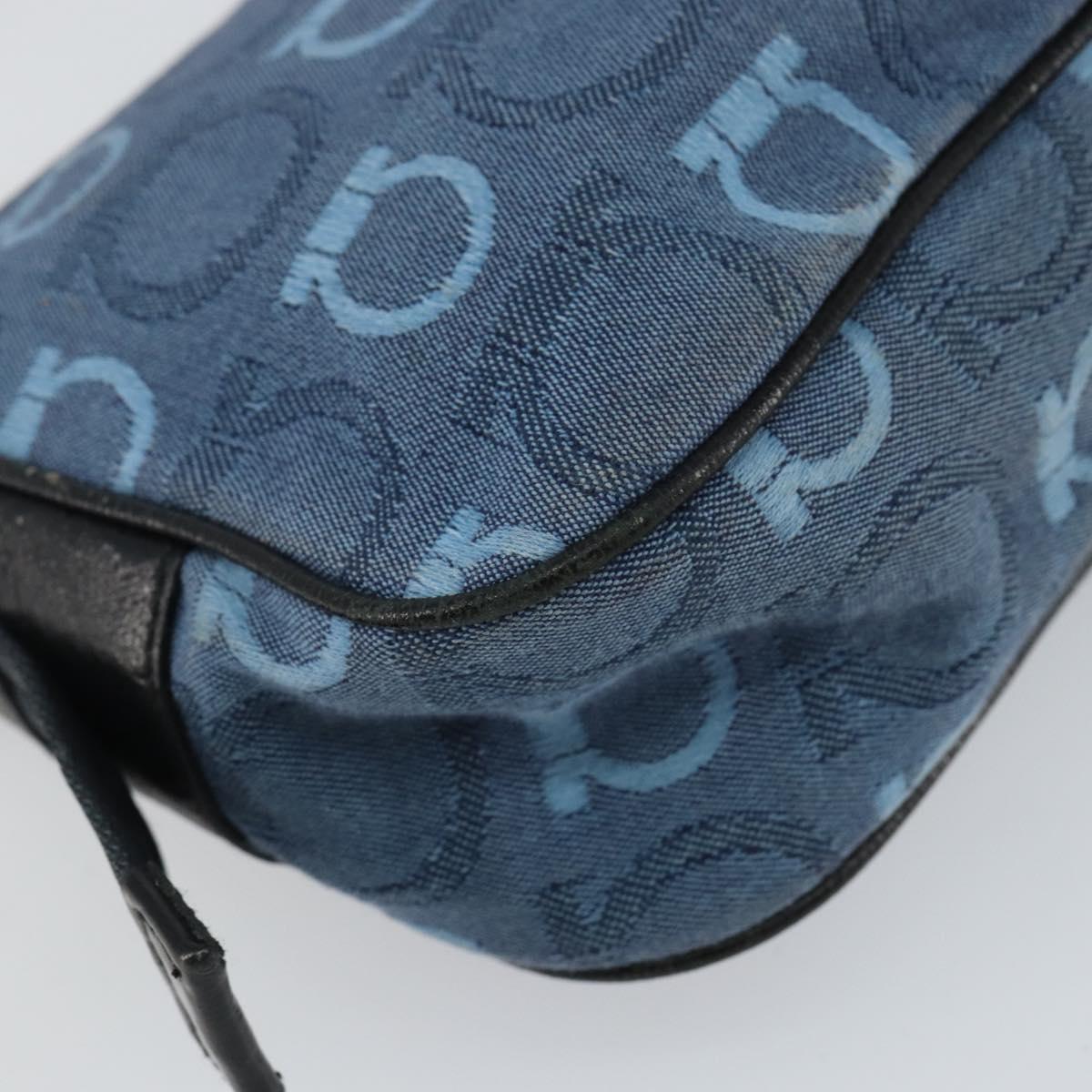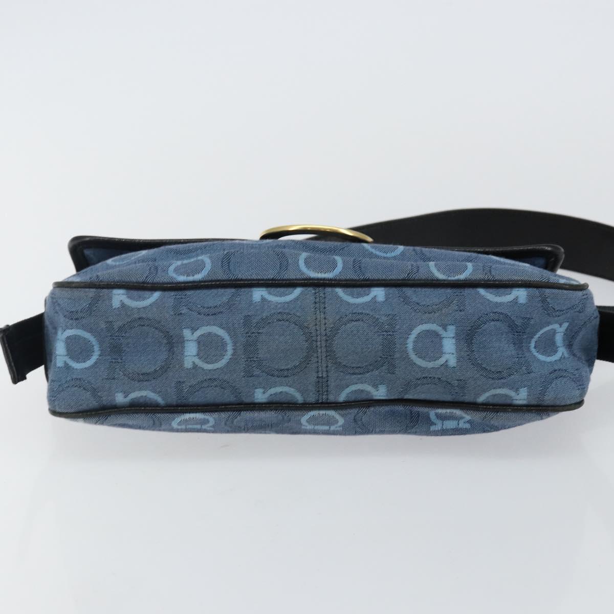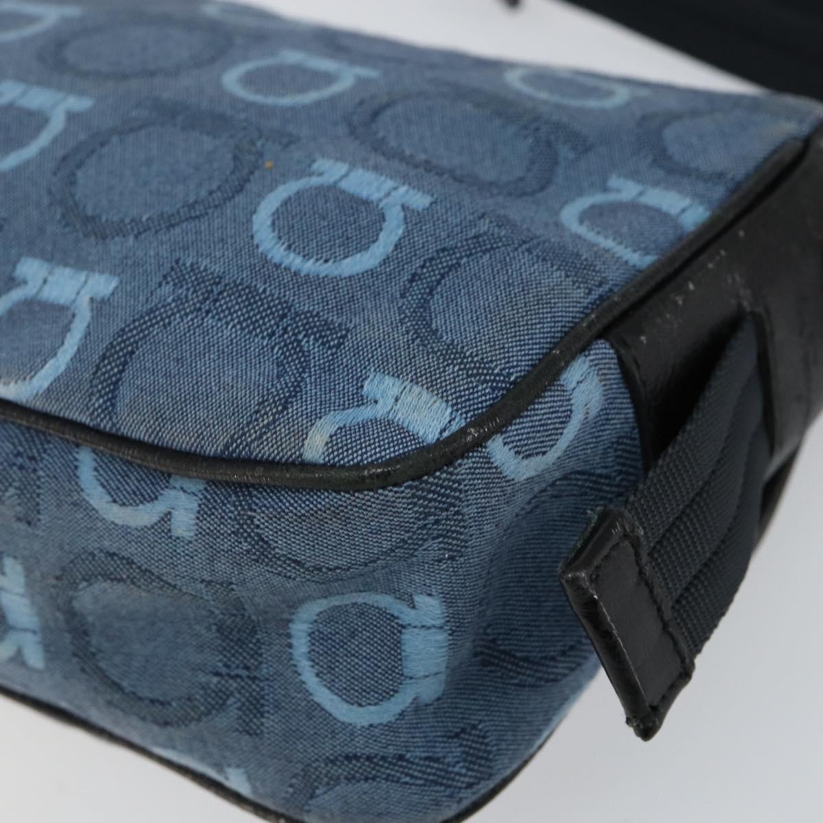 Salvatore Ferragamo Gancini Shoulder Bag Canvas Navy Gold Auth BA5868