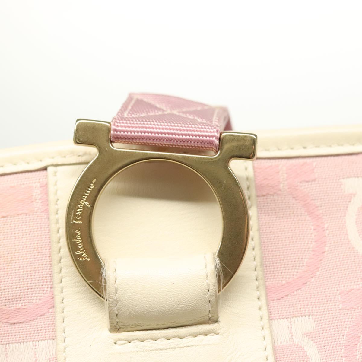Salvatore Ferragamo Gancini Shoulder Bag Canvas Pink Gold Auth 135187