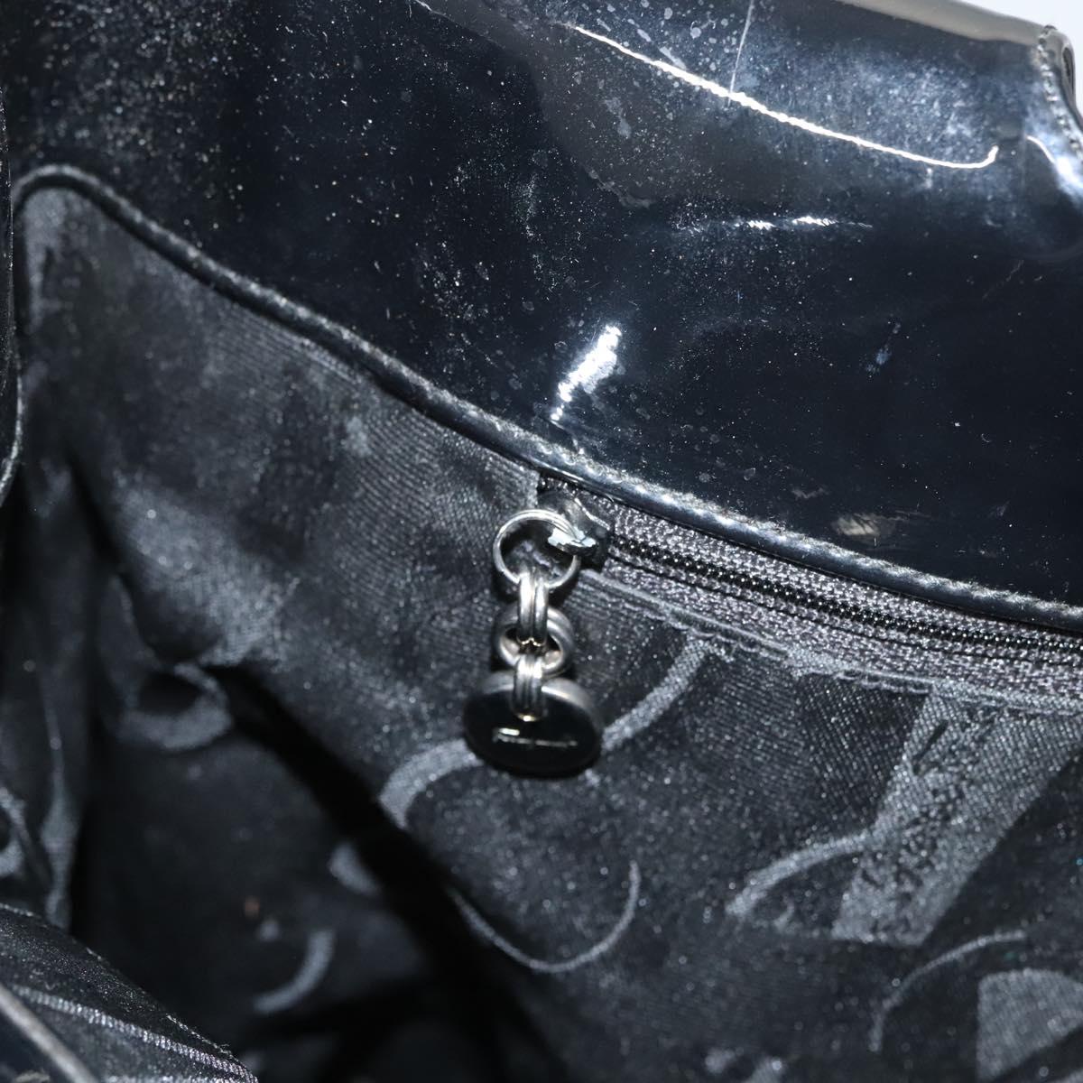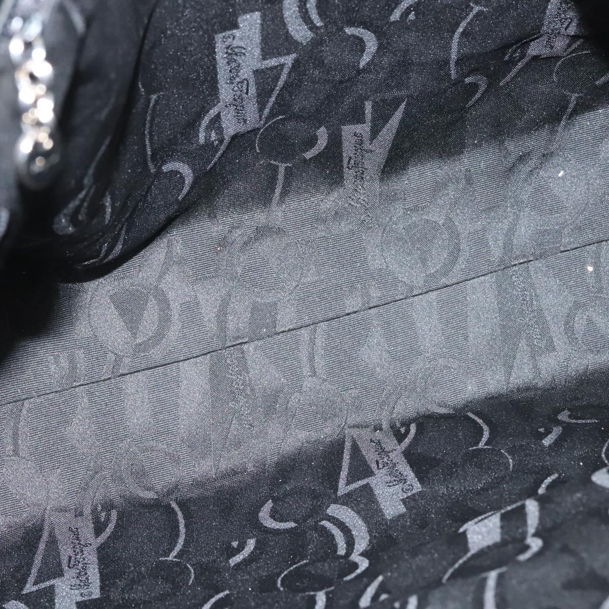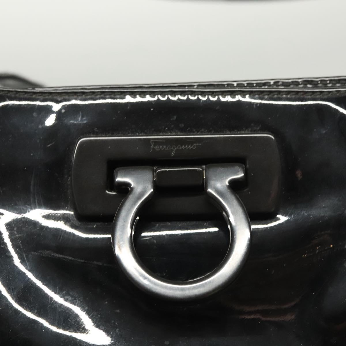 Salvatore Ferragamo Gancini Shoulder Bag Enamel Black Silver Auth bs24679