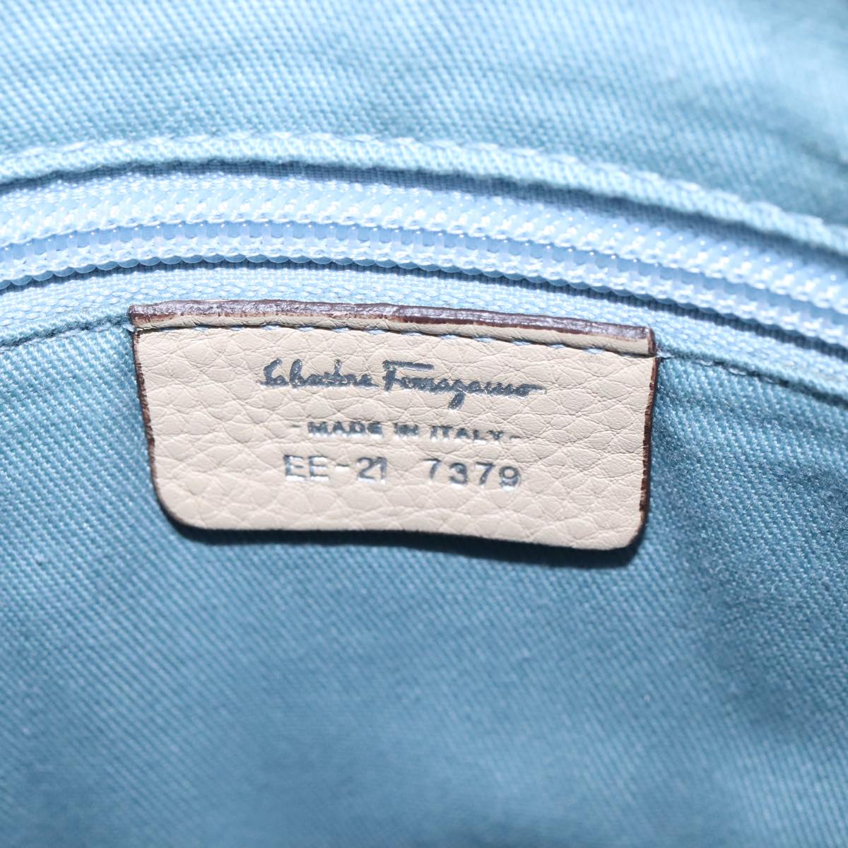 Salvatore Ferragamo Gancini Shoulder Bag Leather Beige Silver Auth 104818